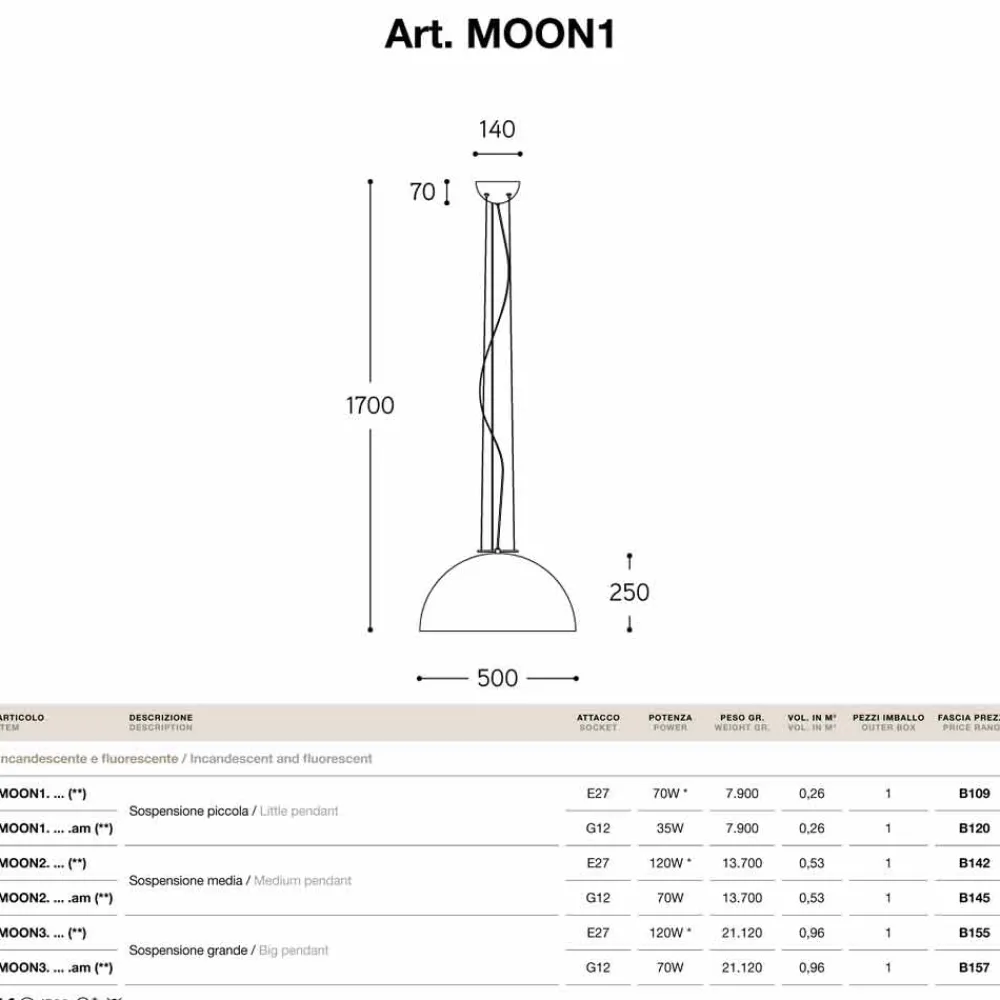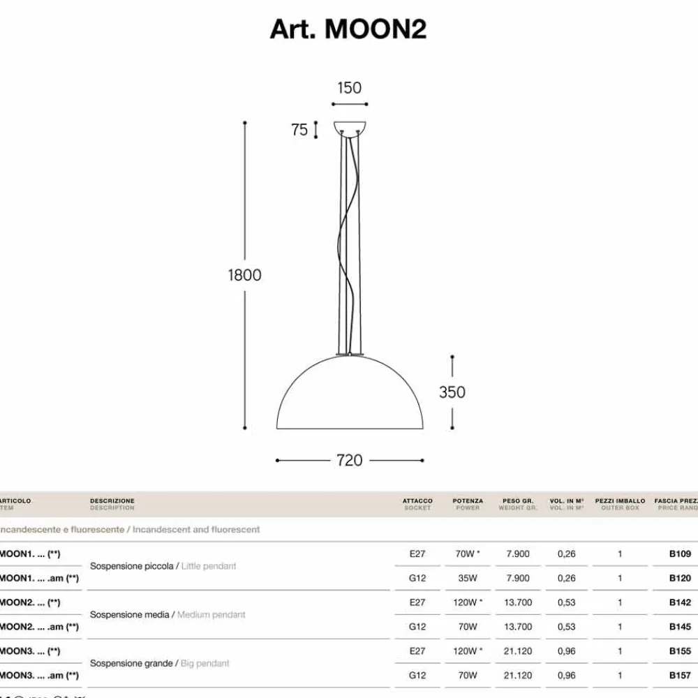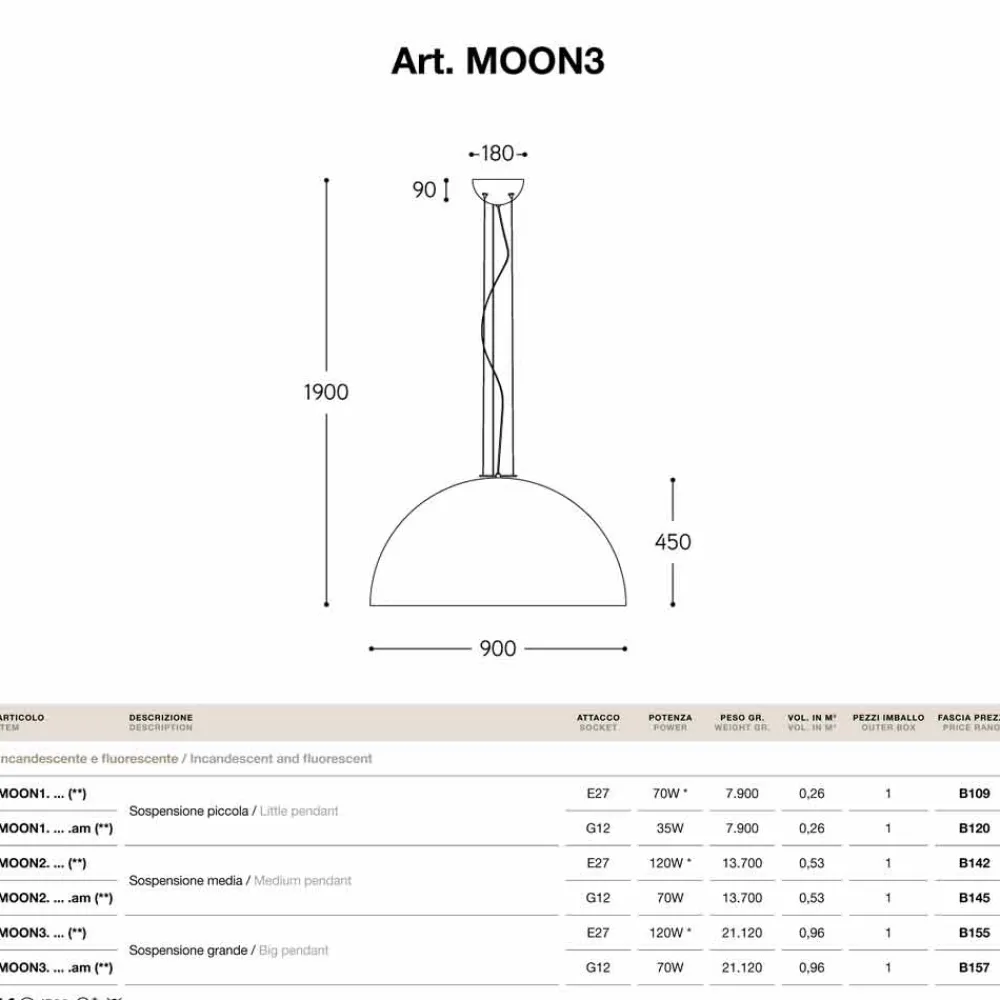 Moderne Design Pendelleuchte Moonlight aus Stahl von Aldo Bernardi, IP 20.