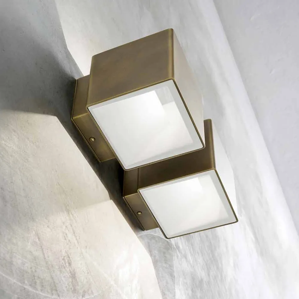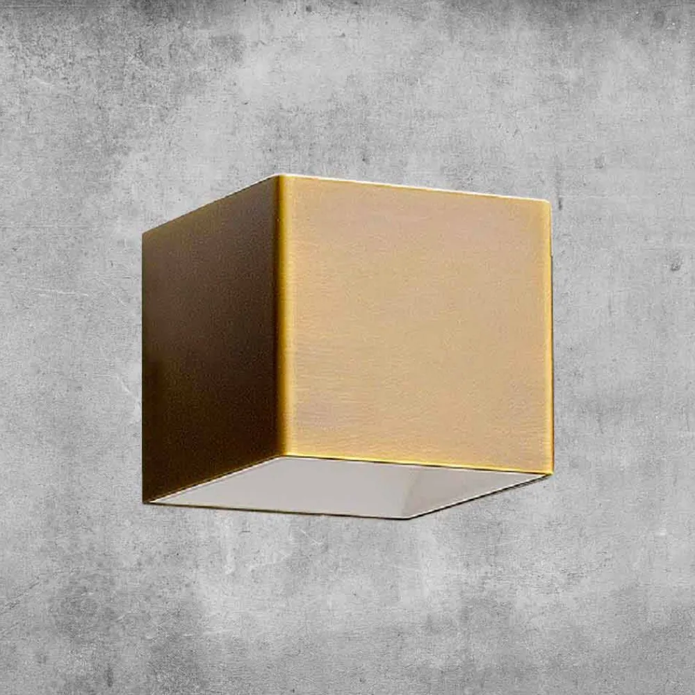 Design an den Wänden: LED-Wandleuchte aus Messing und Gips Cubetto von Aldo Bernardi, made in Italy.