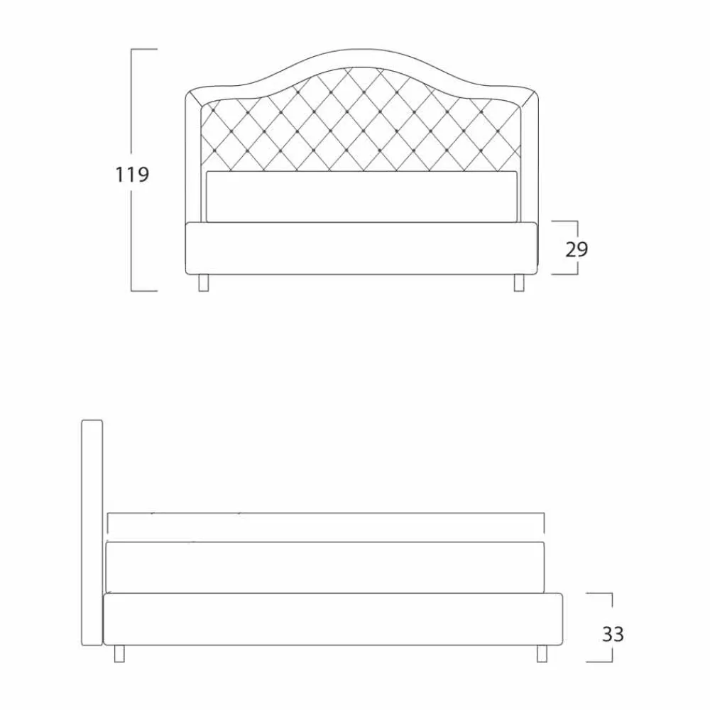 Das Doppelbett Capri hat ein klassisches Design mit barocken Anklängen. Der Protagonist ist sicherlich das wichtige Kopfteil (nicht abnehmbar), das mit Capitonné-Verarbeitung verziert ist und dazu beiträgt, diesem Bett Eleganz und Wirkung zu verleihen.
