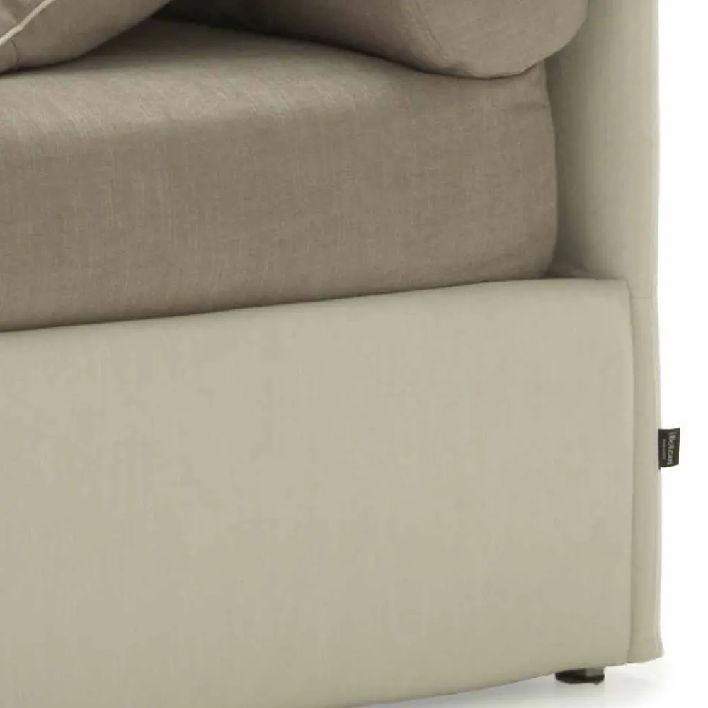 Hergestellt aus einer Struktur aus Eisen und Rohholzfasern, umhüllt mit Polyurethanschaum ohne Fluorchlorkohlenwasserstoffe gemäß UNI-Normen und ausgekleidet mit lichtbeständigem Velfodera. Auf dieser Basis ist ein Metallrahmen H. 30 mm montiert, lackiert mit duroplastischem Epoxidpulver, mit einer Basis aus dampfgebogenen Buchenlatten.