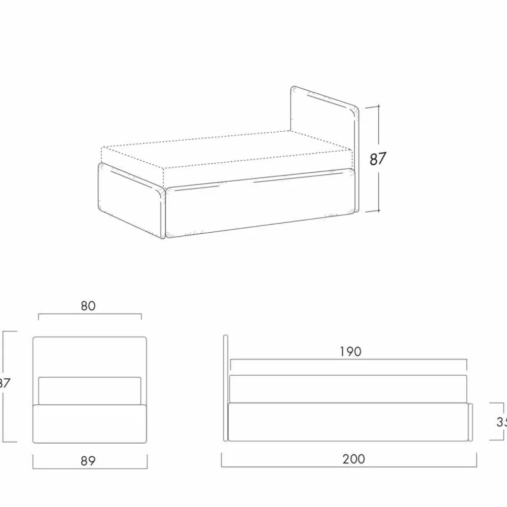 -90×200 cm (Fertigmaße L 101 x T 210 x H 87 cm)