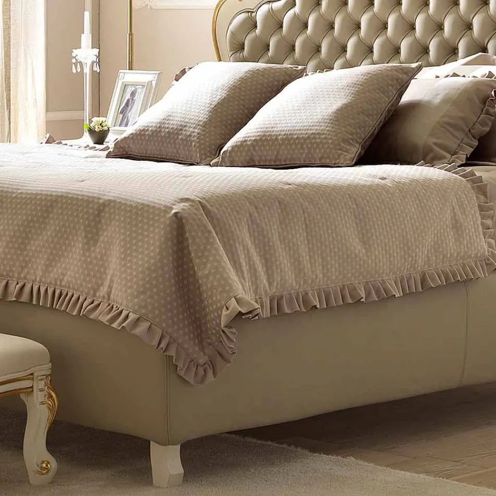 Das Doppelbett Chantal wird dank seines reichen und wichtigen Designs zum Protagonisten des Schlafzimmers. Einladend und komfortabel, bietet es einen Schlafbereich ohne Mode und Konditionierung. Das Kopfteil ist das Schlüsselelement des gesamten Designs und zeichnet sich durch eine feine Capitonné-Verarbeitung aus. Eine Rückkehr zur klassischeren Vergangenheit, die Eleganz und umhüllende Linien offenbart.