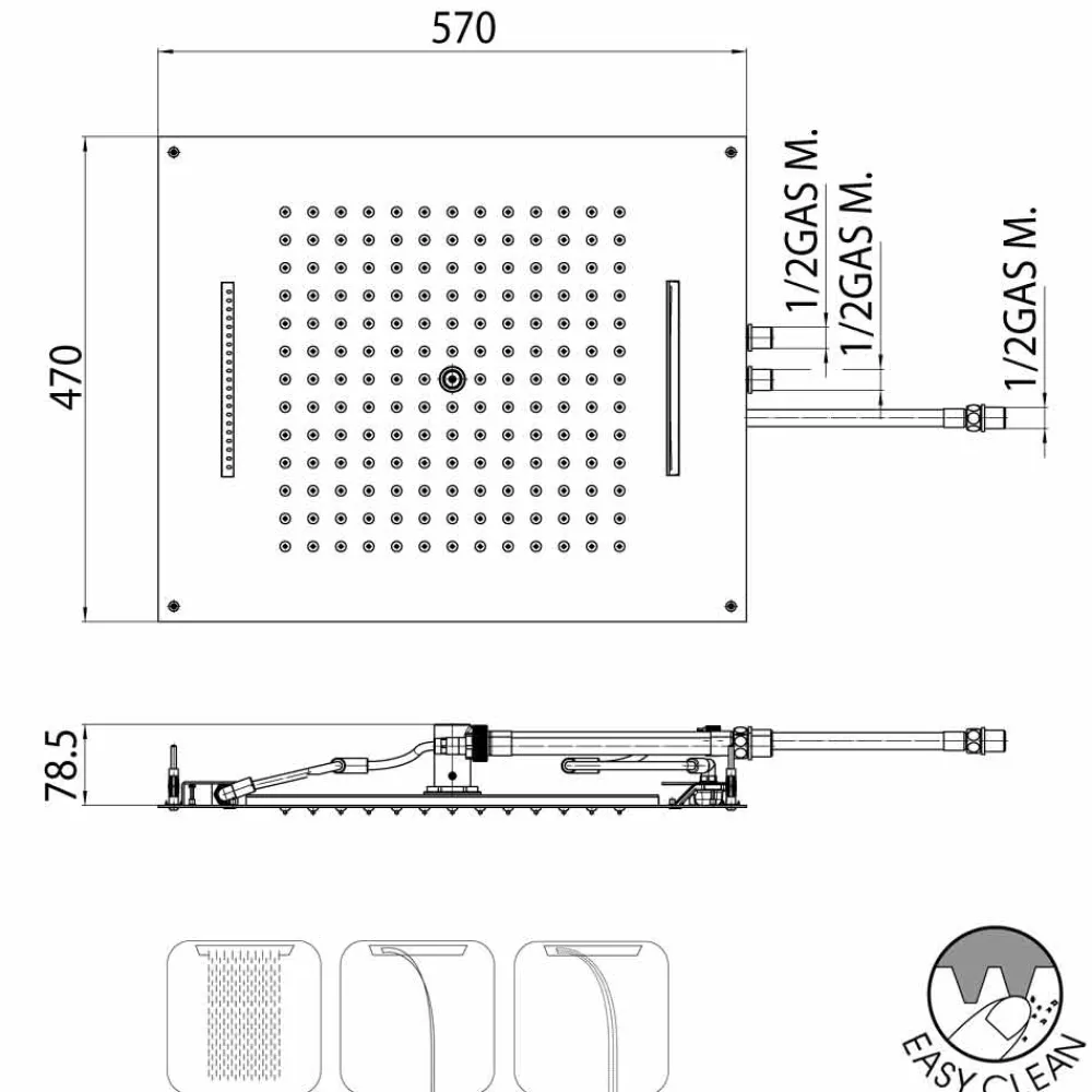 Inneren des Duschkopfs kein Wasser stauen kann. Patentiertes Bossini System.
