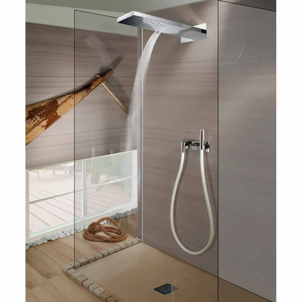 Duschkopf Manhattan aus Edelstahl mit zwei Strahlfunktionen: Regen „Wide-rain“ und Wasserfall