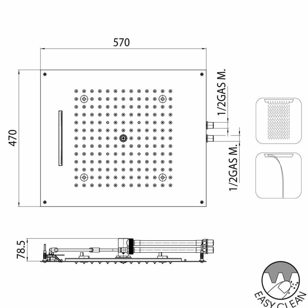 Inneren des Duschkopfs kein Wasser stauen kann. Patentiertes Bossini System.