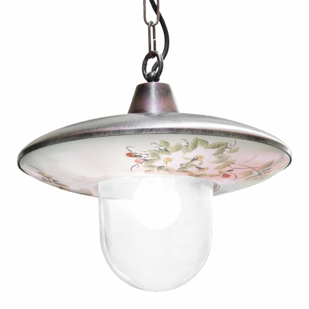 Hängeleuchte für den Außenbereich aus schwarzem Aluminium mit handbemalten Blumen, hergestellt in Italien von Ferroluce.