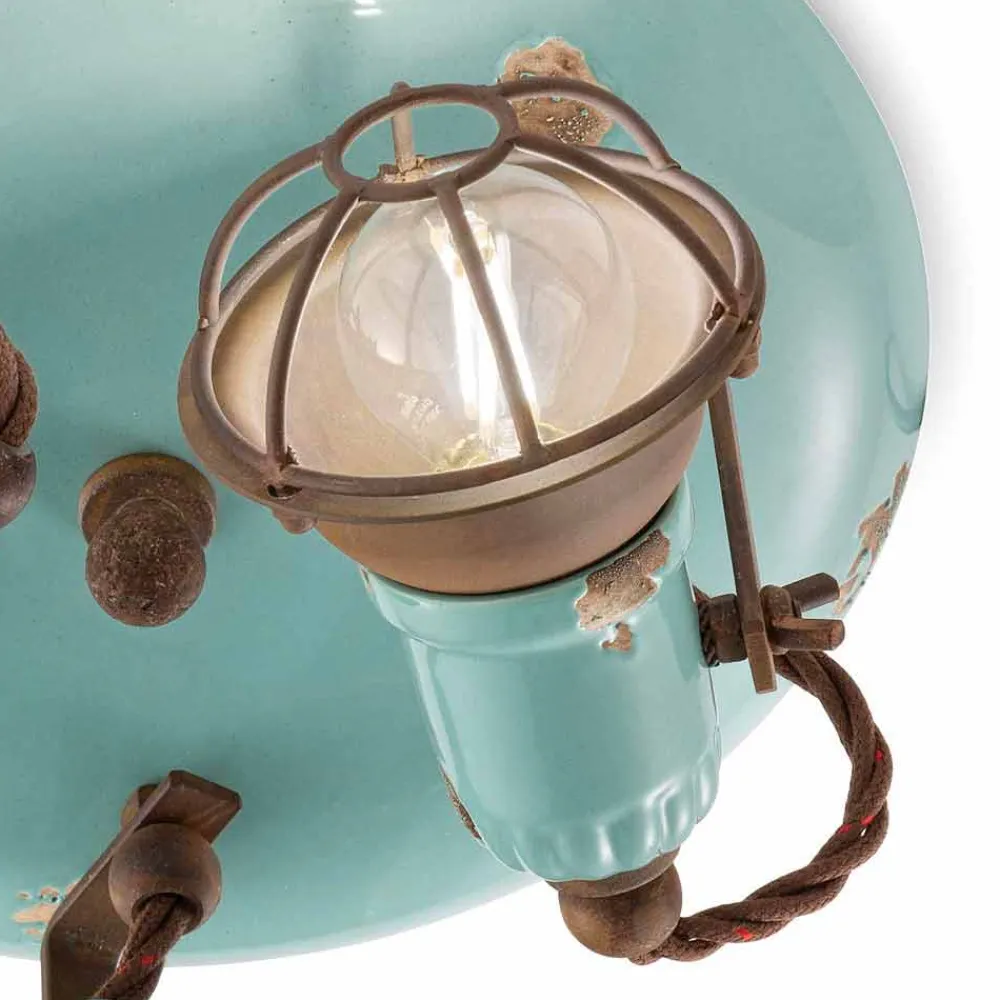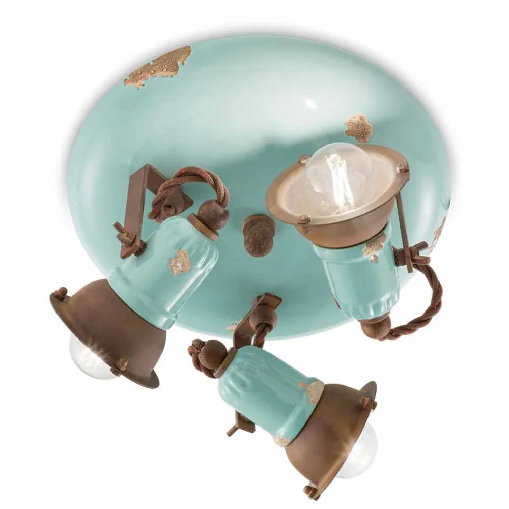 Gerichtetes Licht, Keramik mit Vintage-Oberflächen in perfekter Harmonie mit oxidiertem Metall: eine einzigartige Deckenleuchte in ihrem Stil, mit einem antiken Geschmack, perfekt für die raffiniertesten Umgebungen.