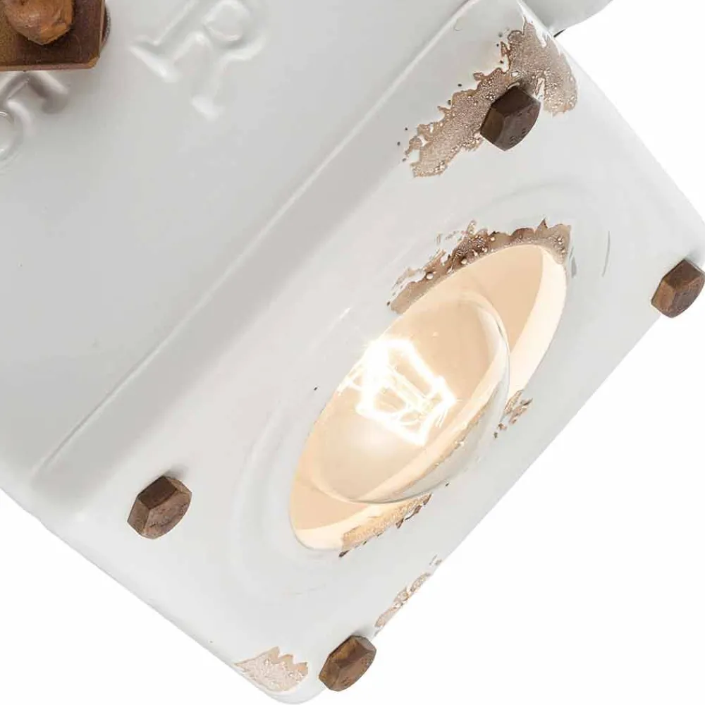 Eine weitere Besonderheit dieser Leuchte liegt in der handwerklichen Verarbeitung des Keramikdiffusors. Die Keramik ist in der Tat so dekoriert, als ob die Zeit ihren Weg gezeichnet hätte. Die Reproduktion der Erosion der Zeit in Kombination mit den glänzenden Oberflächen verleihen dieser Applikation diesen zusätzlichen Wert. Dieser abgenutzte Effekt verleiht Julia einen raffinierten Vintage-Industrial-Stil.