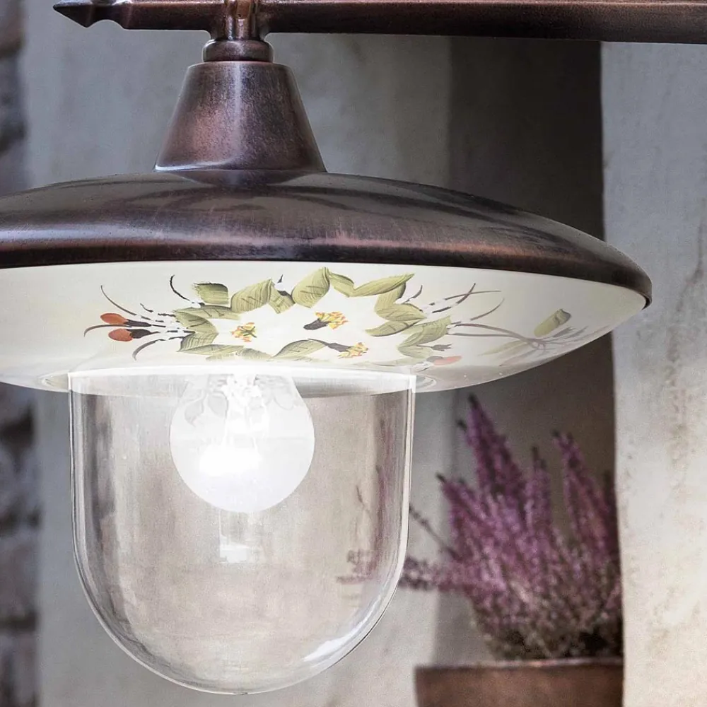 Diese Außenwandleuchte ist vollständig aus schwarzem Aluminium mit Kupferschirm gefertigt und mit handgemalten Blumen für einen klassischen und harmonischen Stil zwischen Form und Farbe verziert.