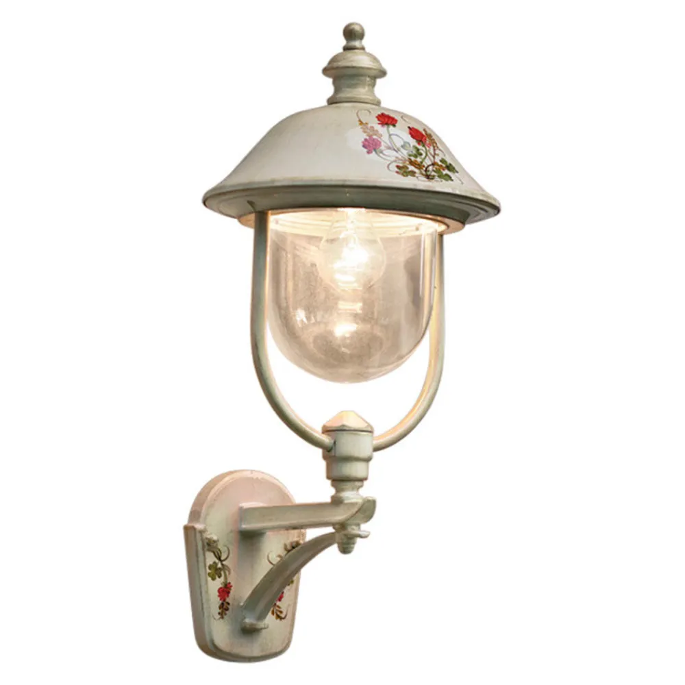 Diese Außenwandleuchte ist vollständig aus Aluminium gefertigt und mit handgemalten Blumen verziert, um einen klassischen und harmonischen Stil zwischen Form und Farbe zu erzielen.