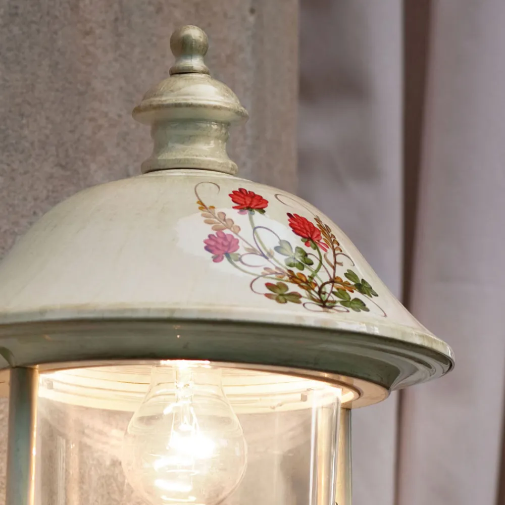 Wandleuchte für den Garten aus handbemaltem Aluminium mit Blumen, hergestellt in Italien von Ferroluce.