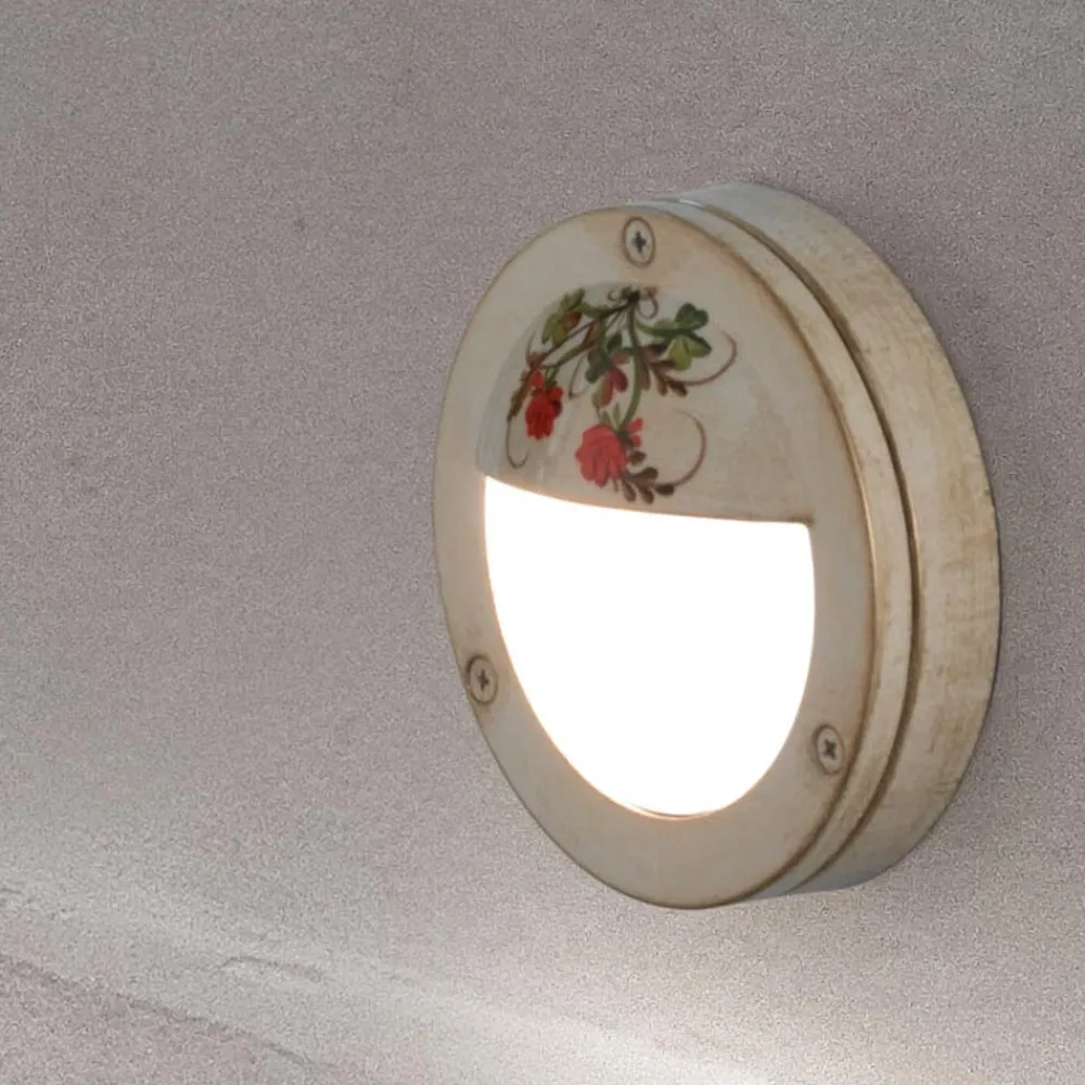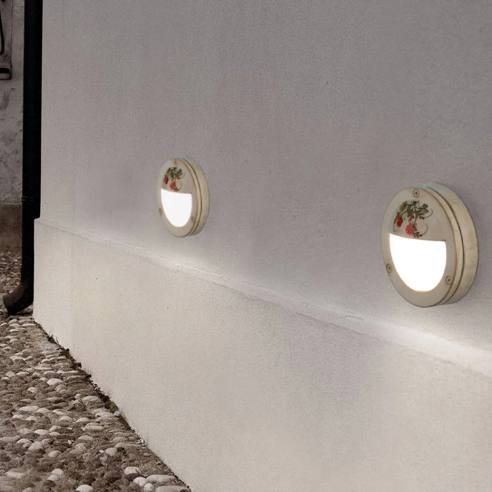 Runde Außenwandleuchte aus handbemaltem Aluminium mit Blumen, hergestellt in Italien von Ferroluce.
