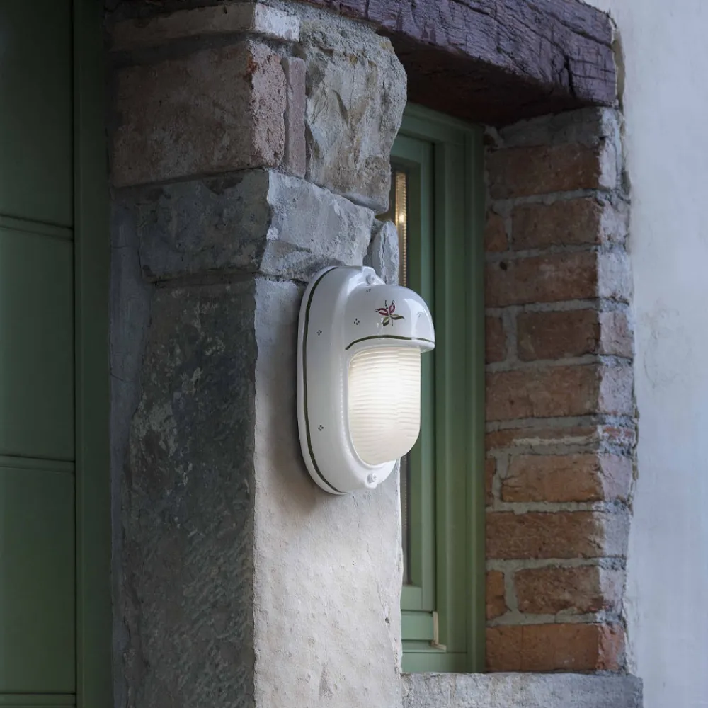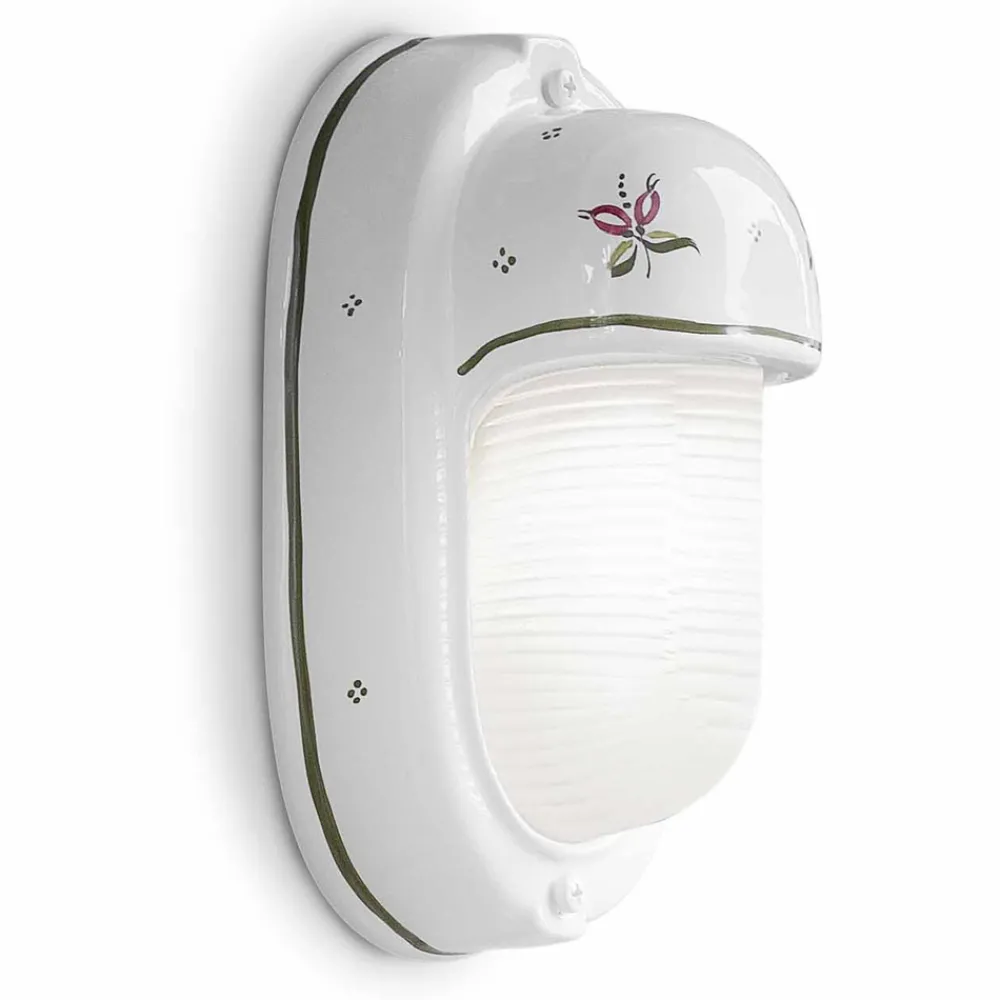 Handbemalte vertikale Keramik-Außenwandleuchte mit Blumen, hergestellt in Italien von Ferroluce.