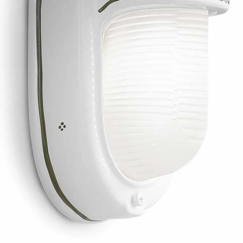 Diese vertikale Gartenwandleuchte besteht vollständig aus Keramik , die mit handgemalten Blumen für einen klassischen und harmonischen Stil zwischen Form und Farbe verziert ist.