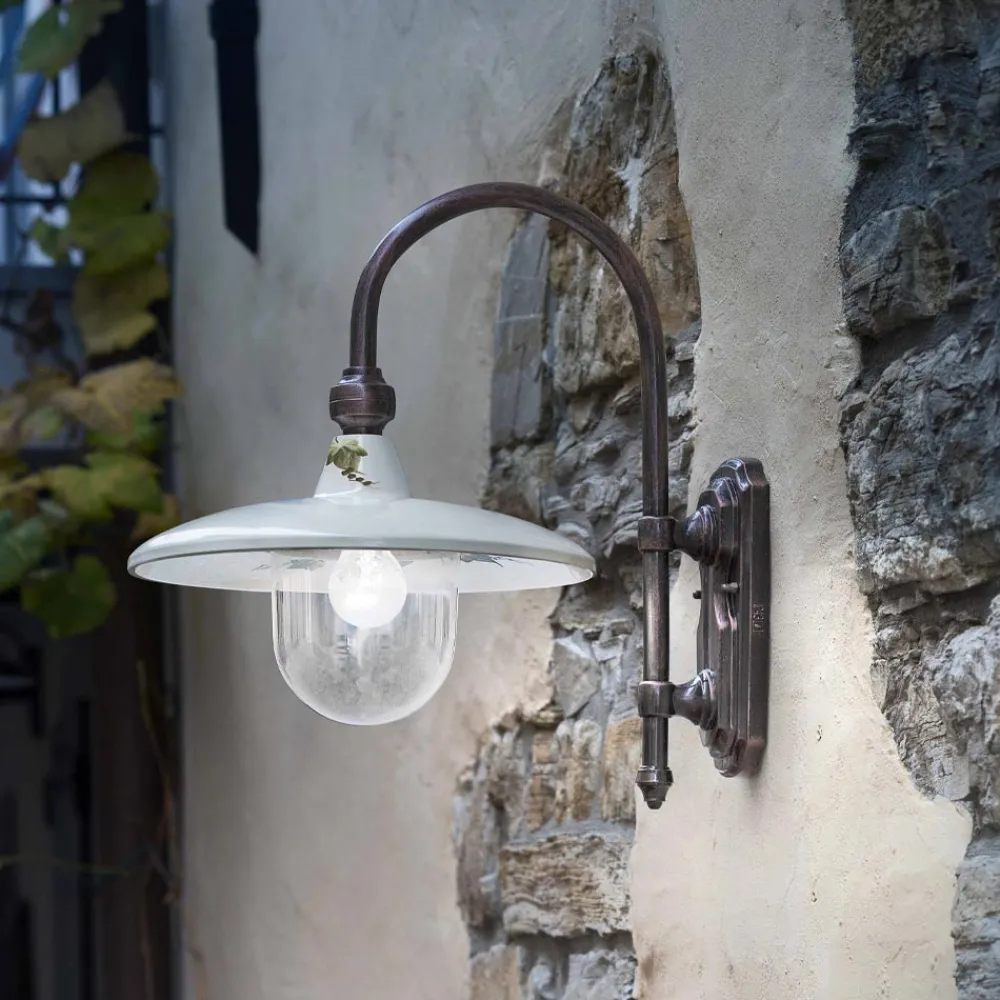 Diese Gartenwandlampe ist vollständig aus Aluminium gefertigt und mit handbemaltem Efeu verziert, um einen klassischen und harmonischen Stil zwischen Form und Farbe zu erzielen.
