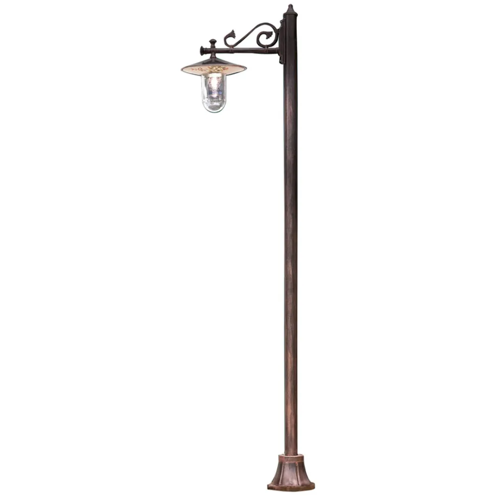 Dieser Gartenlaternenpfahl ist vollständig aus Aluminium mit handgemaltem Blumendekor für einen klassischen und harmonischen Stil zwischen Form und Farbe.