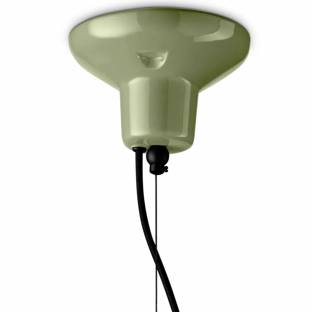 Hängeleuchte aus 4 farbigen Keramikelementen , Diffusor aus satiniertem Opalglas und ummanteltem Baumwollkabel, vollständig in Italien hergestellt.