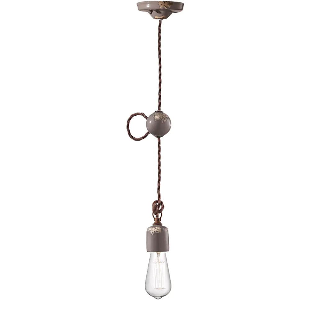 Industrielle Hängelampe, handgefertigt aus Keramik und Metall, hergestellt in Italien von Ferroluce.