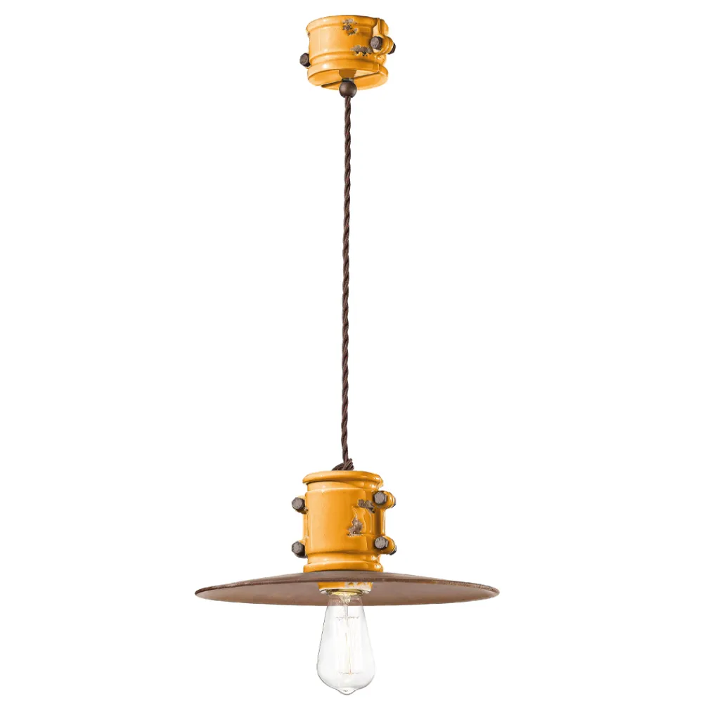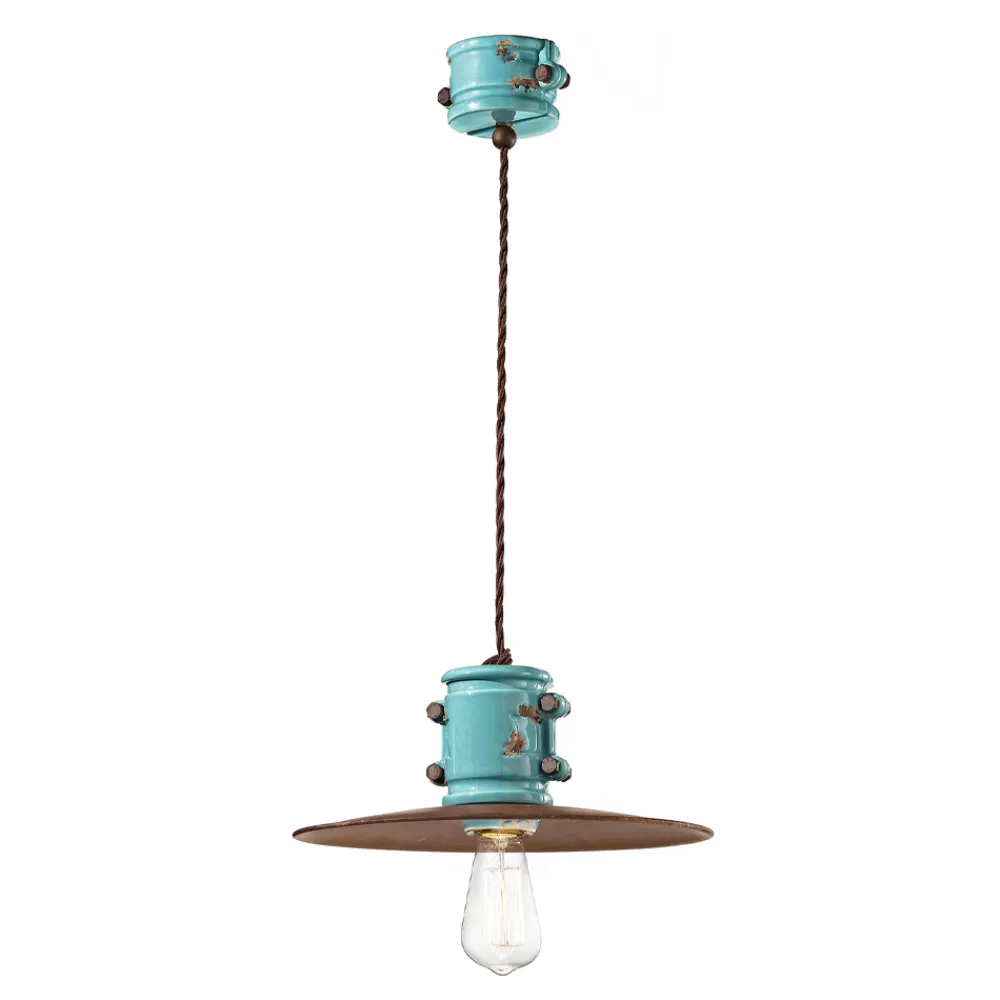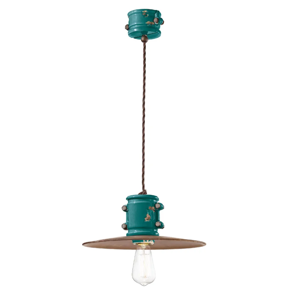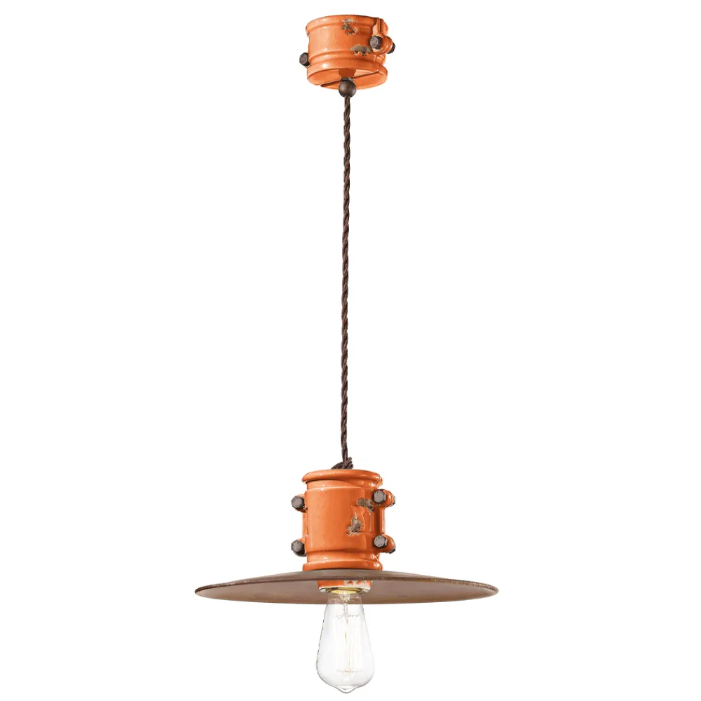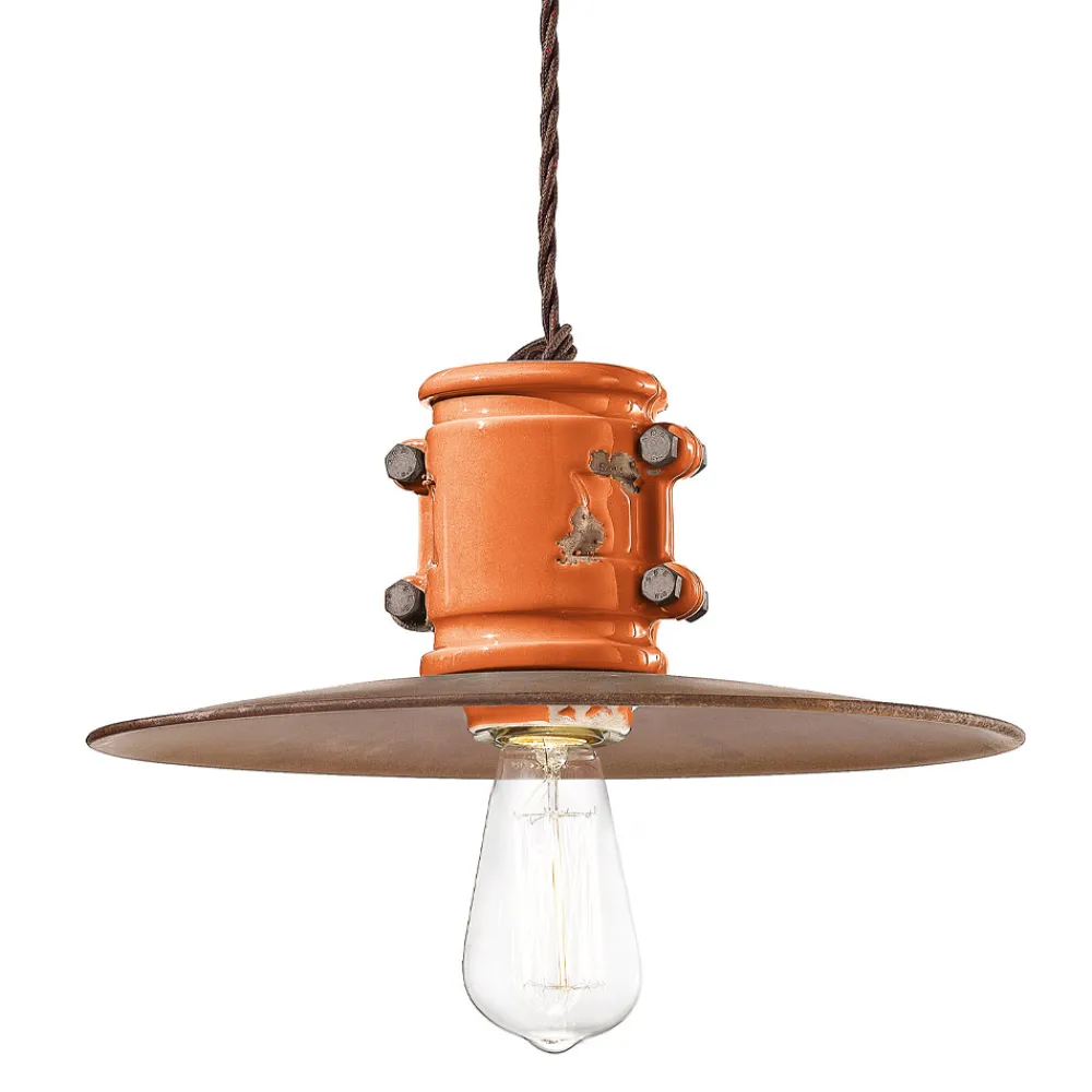 Handgefertigte Hängelampe aus Keramik und Metall im Industriedesign, hergestellt in Italien von Ferroluce.