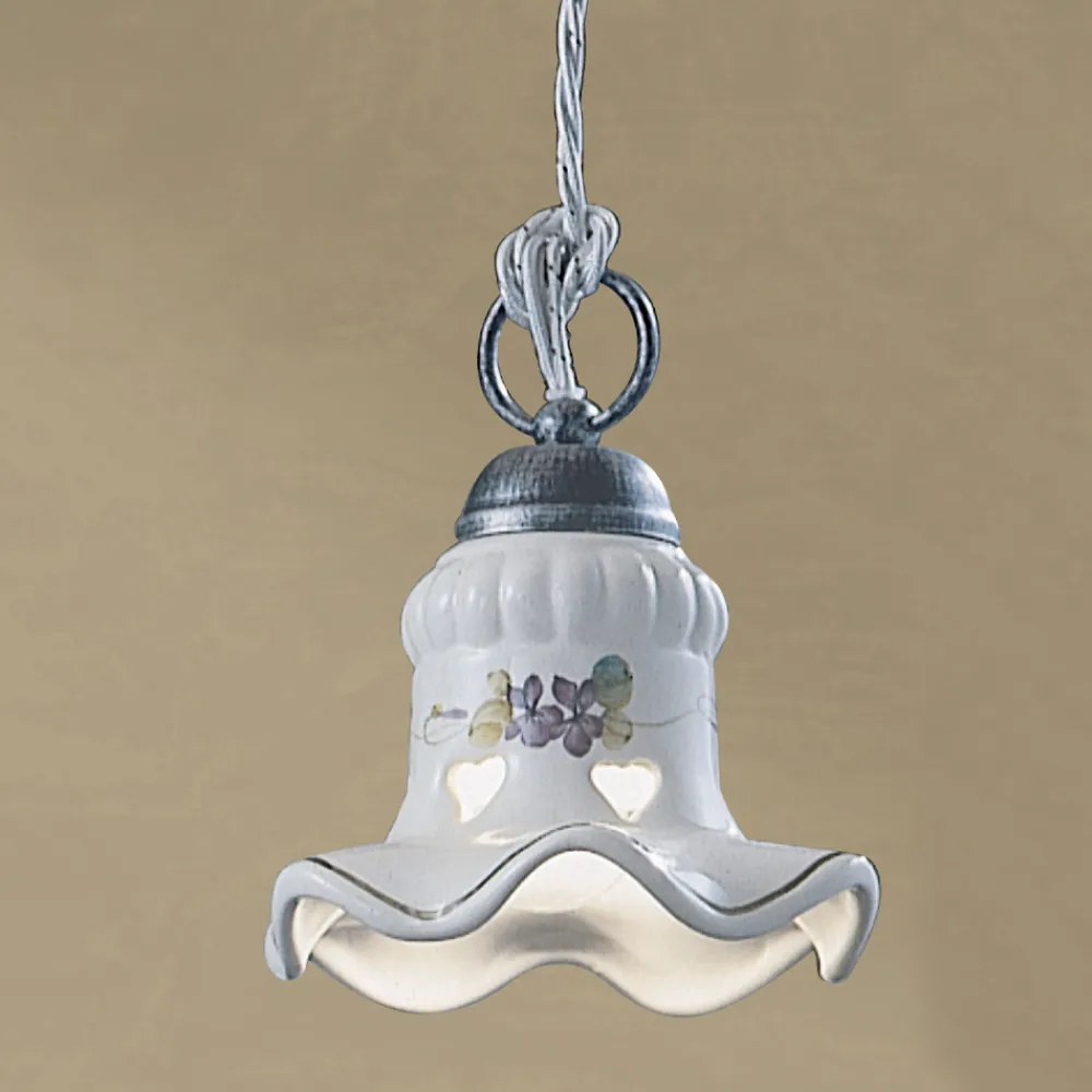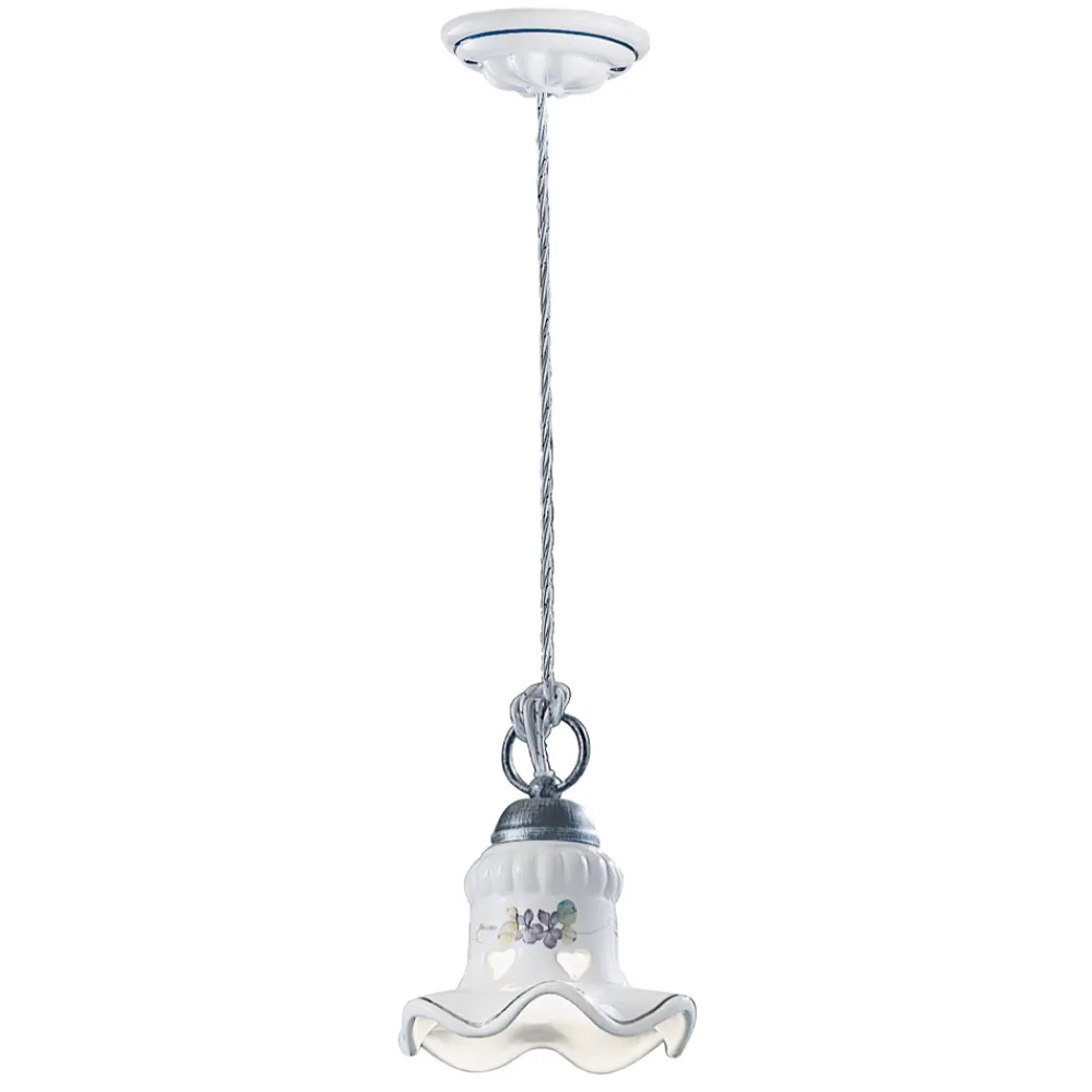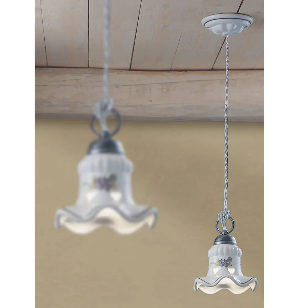 Handverzierte Hängelampe aus Eisen und Keramik, hergestellt in Italien von Ferroluce.