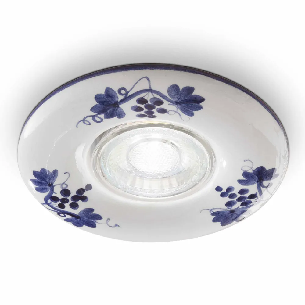 Handverzierter Strahler aus glänzend weißer Keramik.