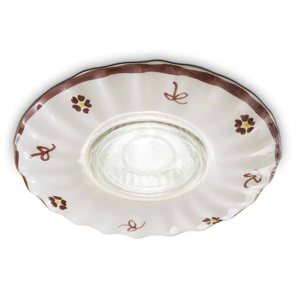 Deckenstrahler aus glänzend weißer Keramik, vollständig von Hand dekoriert.