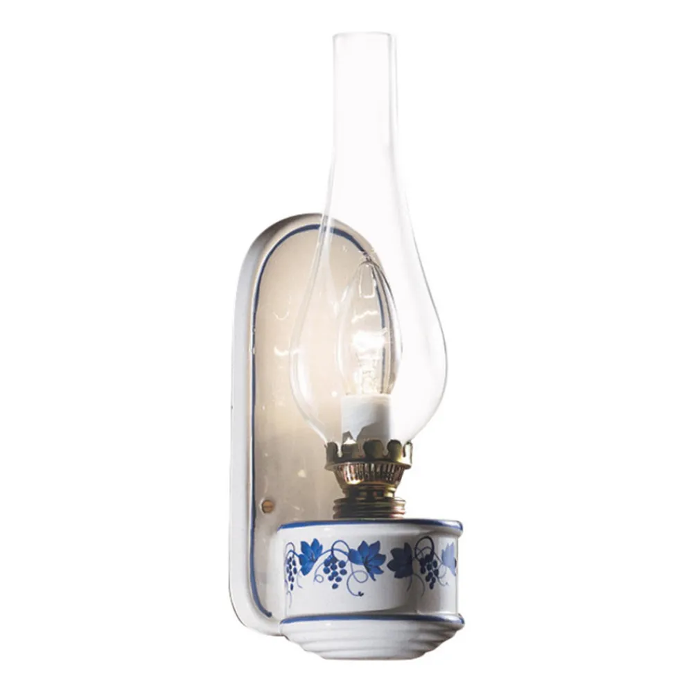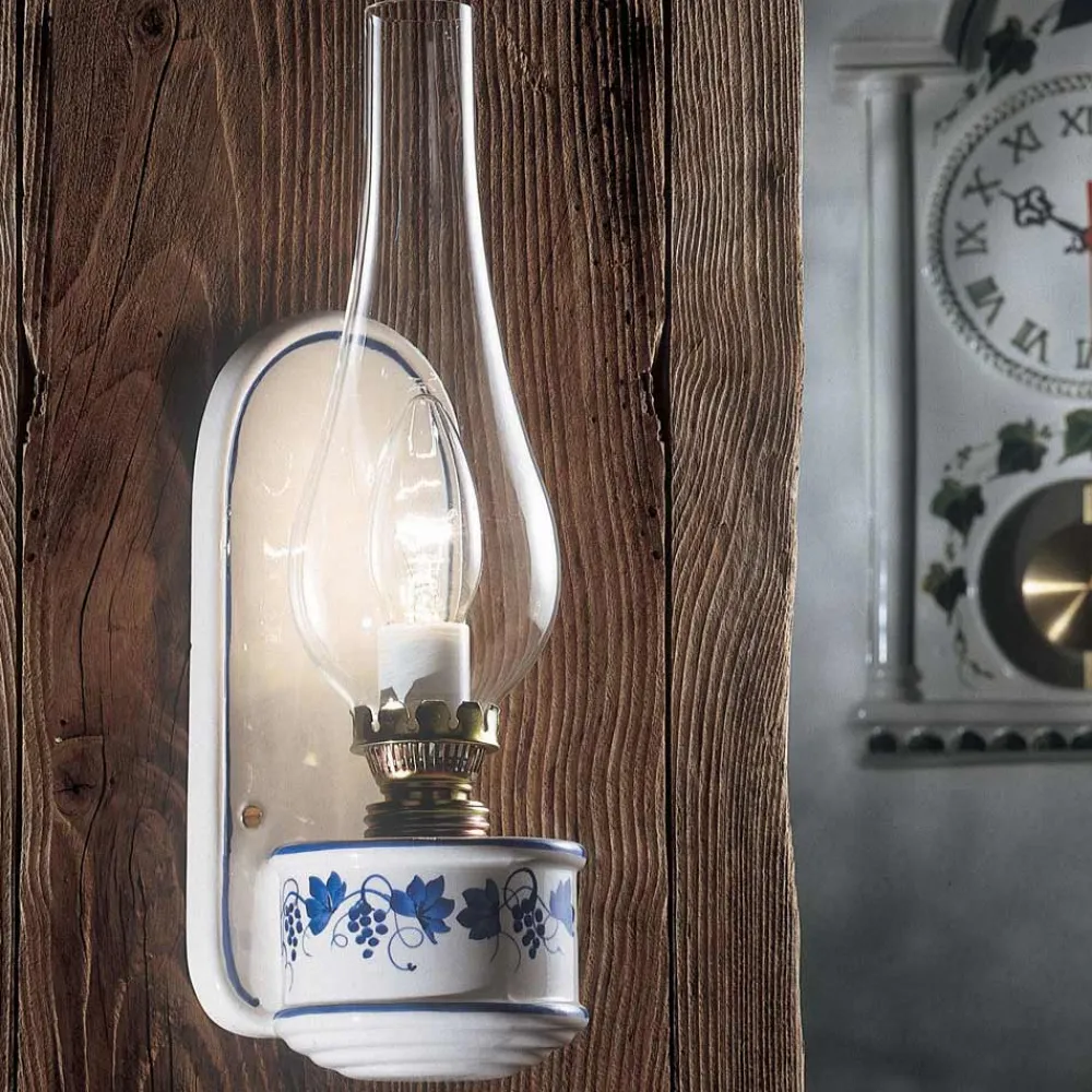 Rustikale Lampe aus glänzend weißer Keramik mit Metallstruktur, Diffusor aus transparentem Glas.