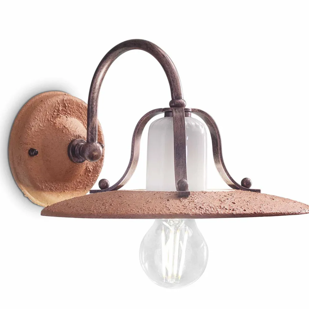 Rustikale Wandlampe aus glänzend weißer Keramik, komplett von Hand verziert mit Metallstruktur.