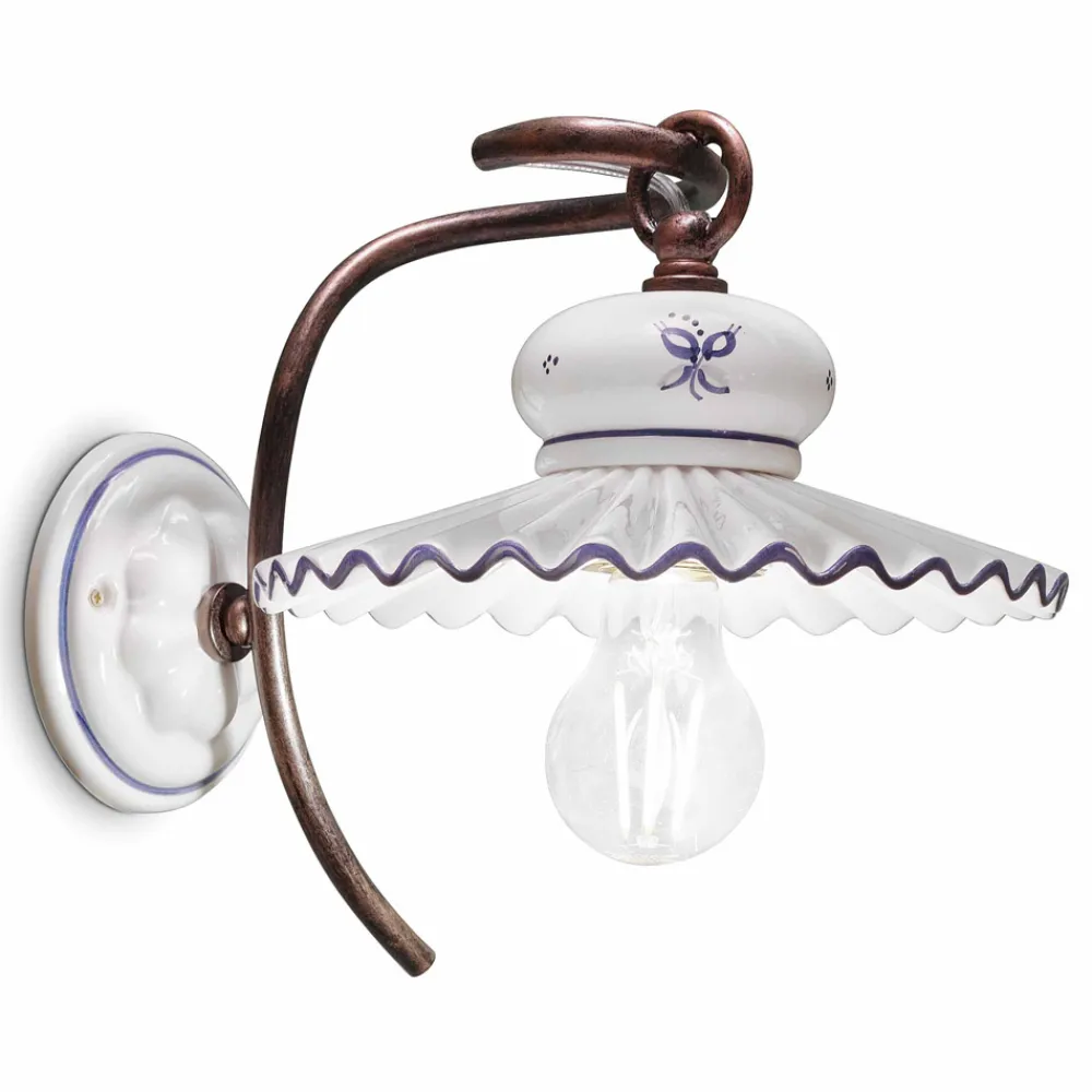 Rustikale Lampe aus weißer, glänzender Keramik, von Hand verziert und mit Metallstruktur