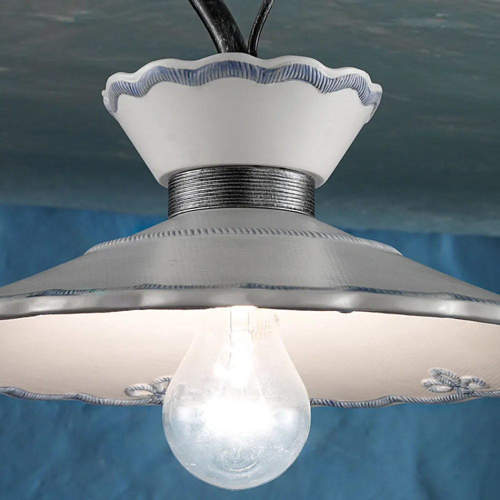 Diese Deckenleuchte ist vollständig handgefertigt aus Metall und Keramik mit handgemalter Dekoration, um das Können und die handwerklichen Fähigkeiten der Handwerker hervorzuheben.