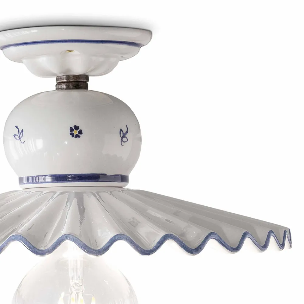 Handgefertigte Deckenlampe aus Metall und handbemalter Keramik, 2 Größen, hergestellt in Italien von Ferroluce.