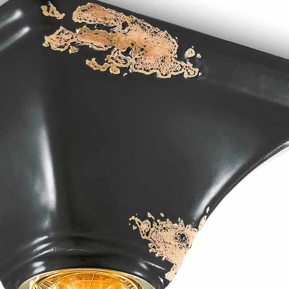 Die Besonderheit dieser Lampe liegt in der Verarbeitung ihrer äußeren Oberfläche, die so dekoriert ist, als hätte die Zeit ihren Weg gezeichnet. Die Reproduktion der Erosion der Zeit in Kombination mit den glänzenden Oberflächen verleihen dieser Deckenleuchte diesen zusätzlichen Wert.