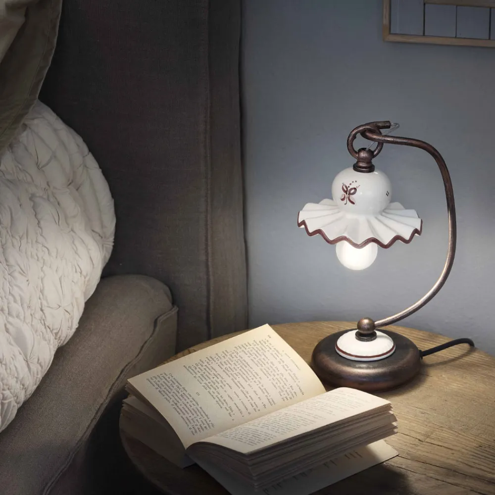 Handgefertigte Stehlampe aus Metall und handbemalter Keramik, hergestellt in Italien von Ferroluce.