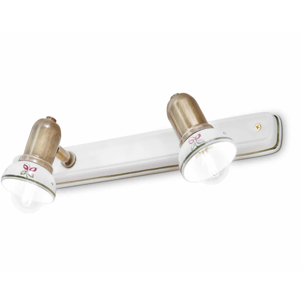 Lineare Wandleuchte mit 2 Leuchten aus Messing und handbemalter Keramik, hergestellt in Italien von Ferroluce.