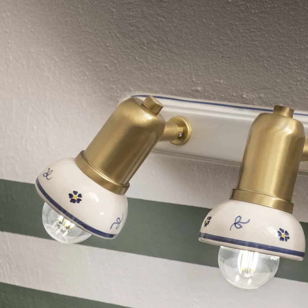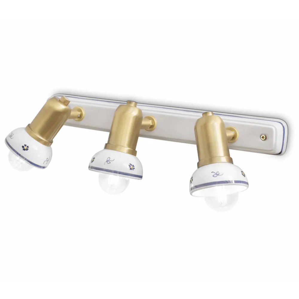 Lineare Wandleuchte 3 Lichter aus Messing und handbemalter Keramik, hergestellt in Italien von Ferroluce.