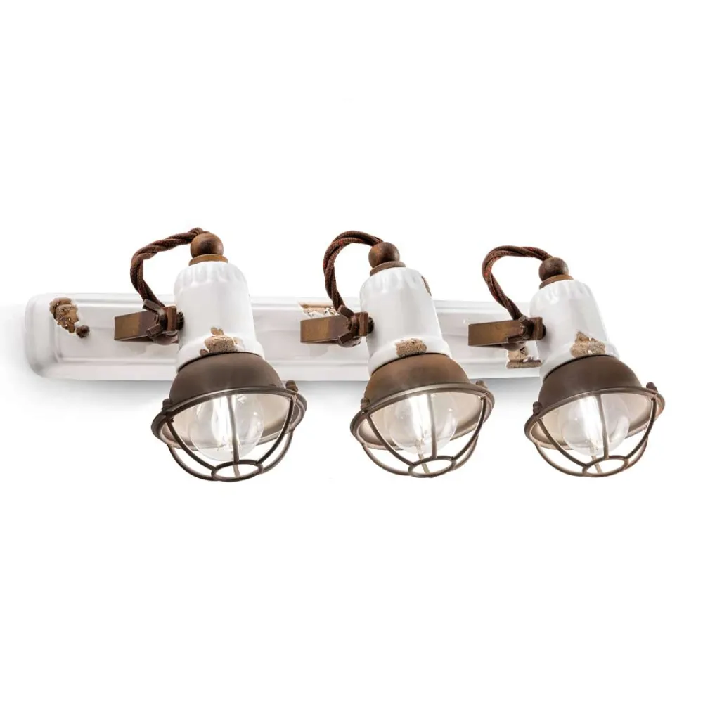 Handgefertigte 3-flammige Wandlampe aus Keramik und Eisen im Industriedesign, verschiedene Ausführungen, hergestellt in Italien von Ferroluce.