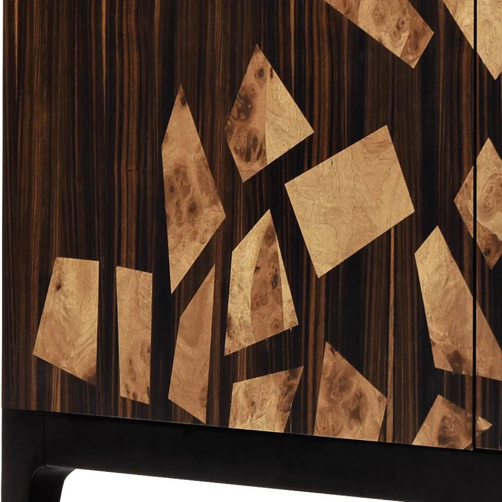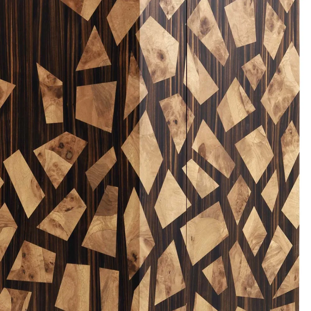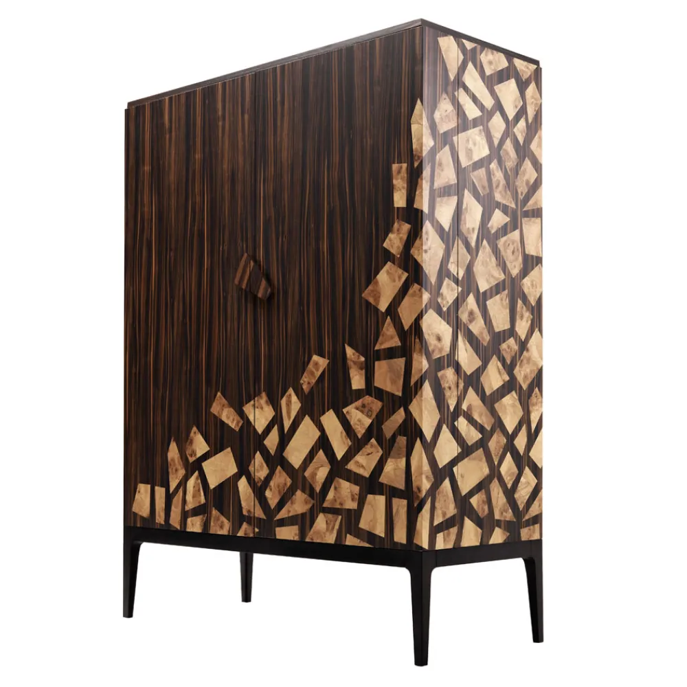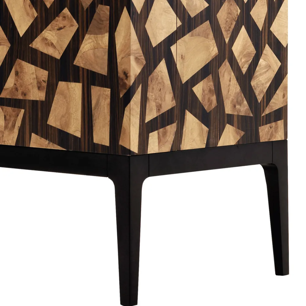 Die zweitürige Zarafa-Kabinettbar zeichnet sich durch ihre elegante und raffinierte Formensprache aus. Die geometrischen Linien erinnern an den Mantel einer berühmten Giraffe, die dem König von Frankreich im 19. Jahrhundert geschenkt wurde.