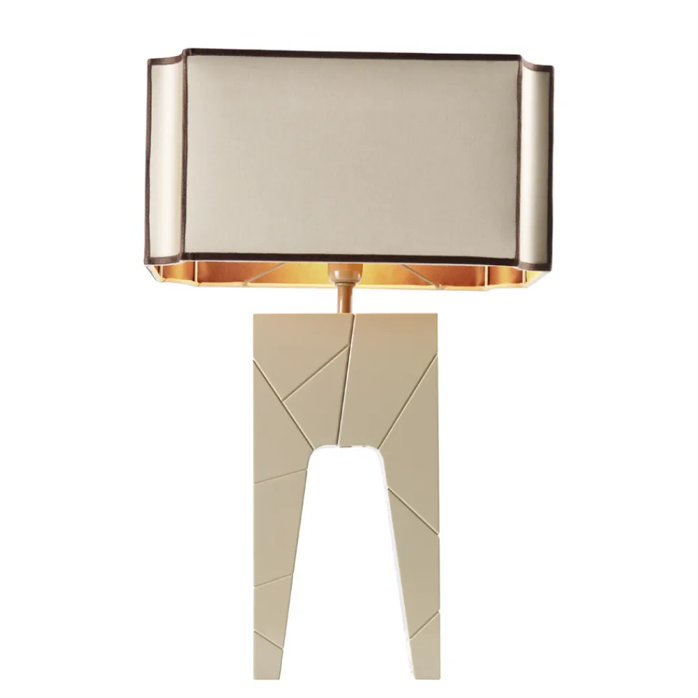 Die Zarafa Lampe hat eine massiv lackierte Massivholzstruktur, die zwischen zwei Farben Beige und Schwarz mit Stoffmütze gewählt wird.