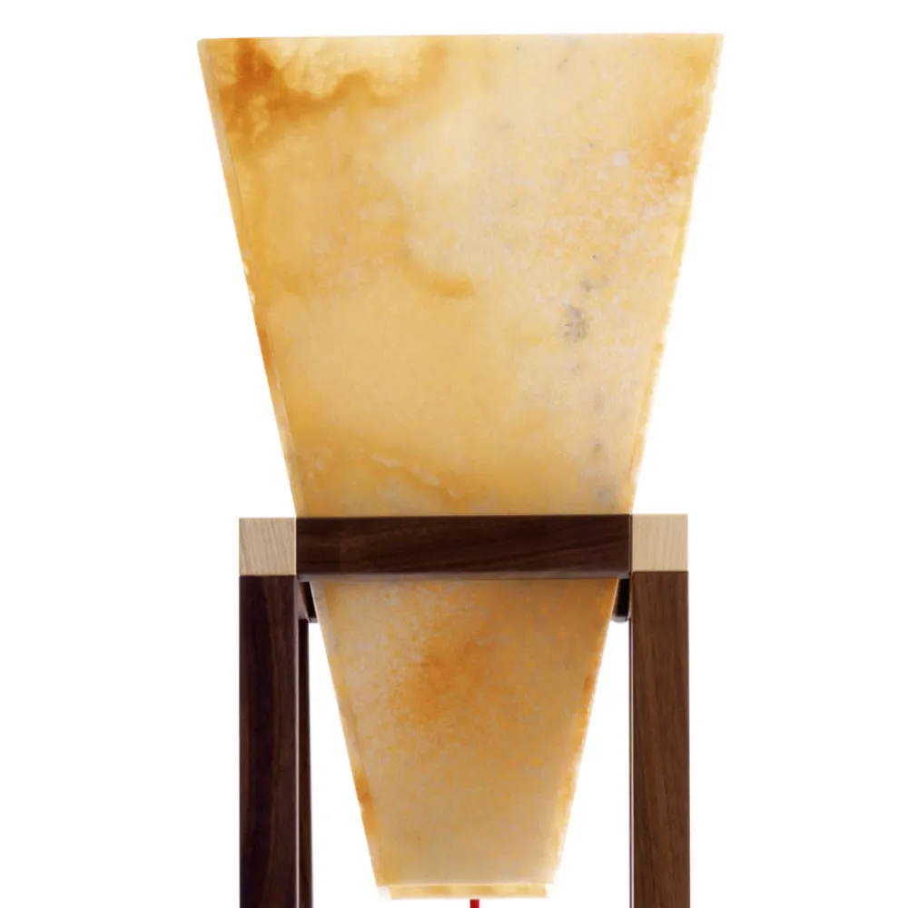 Hergestellt in Italien von erfahrenen Kunsthandwerkern mit Massivholzunterstützung in Nussbaum Canalal und Deckenleuchte aus Onyx.