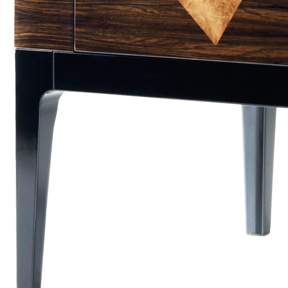 Settimino Zarafa wurde in Italien von erfahrenen Ariern mit einer mehrschichtigen, furnierten Ebenholzstruktur und Koriander-Einlagen aus Ferrarese-Nussbaumholz hergestellt.