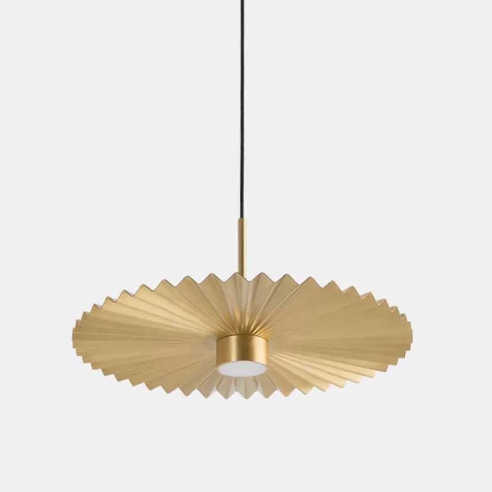 Diese Pendelleuchte ist eine moderne Neuinterpretation des traditionellen konischen Keramikdiffusors mit elegantem Plissee-Effekt.