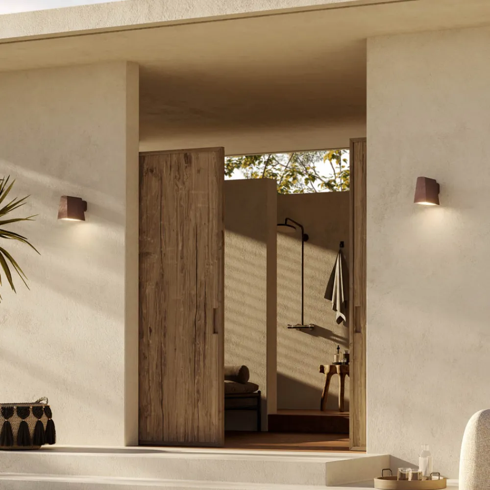 Diese Außenwandleuchte wurde entwickelt, um komfortable und umhüllende Umgebungen zu schaffen.