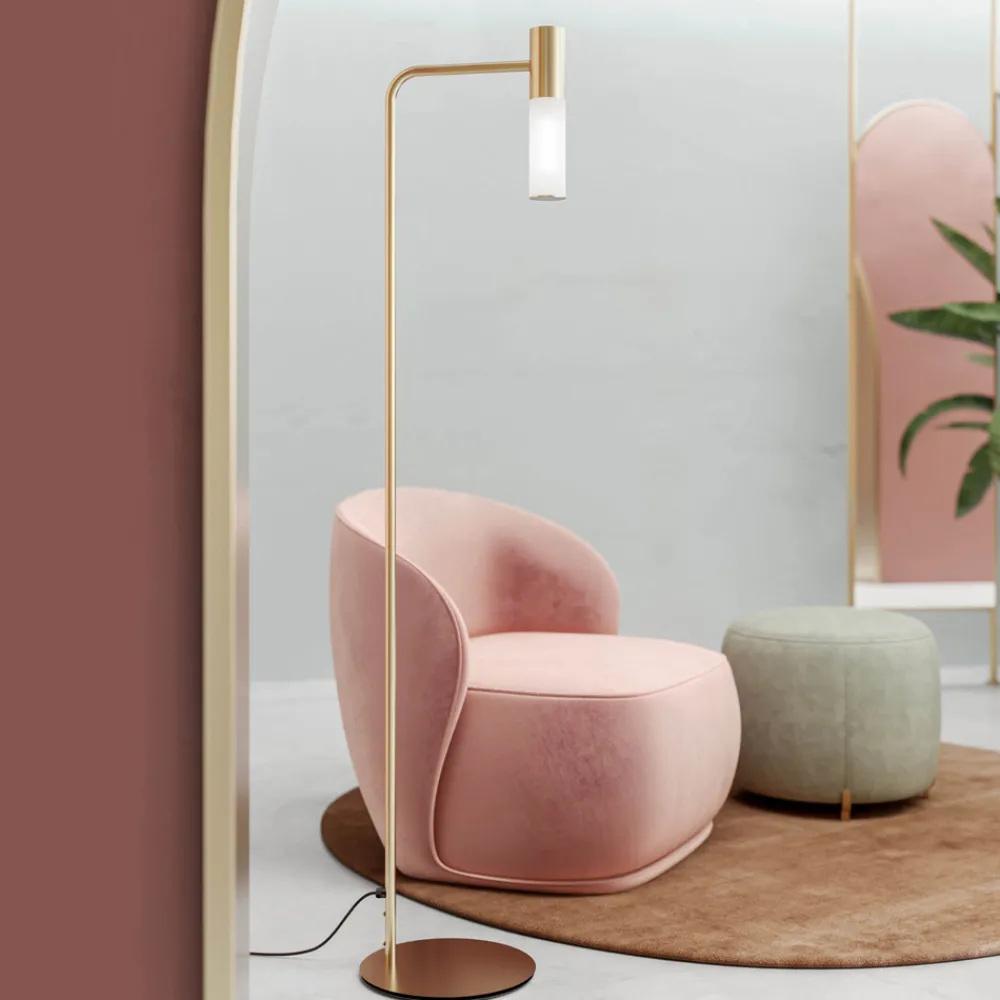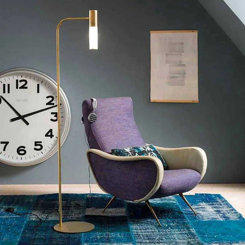 Stehlampe aus natürlichem Messing und Borsilikatglas, hergestellt in Italien.