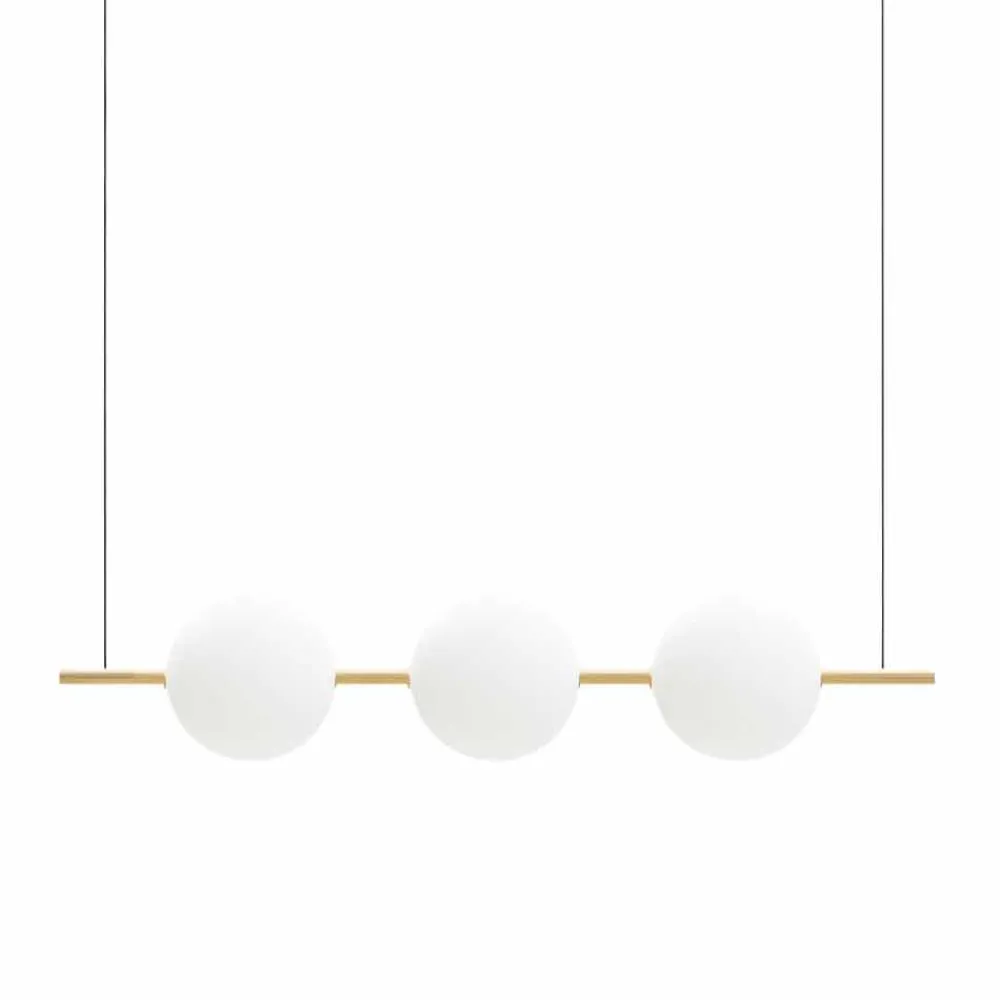 Die leuchtenden Kugeln erscheinen wie aufgehängt und verleihen eine raffinierte und einzigartige Atmosphäre, die sich ideal für die modernsten Kontexte eignet und dank der dimmbaren LED einen Lichtstrahl hinterlässt.