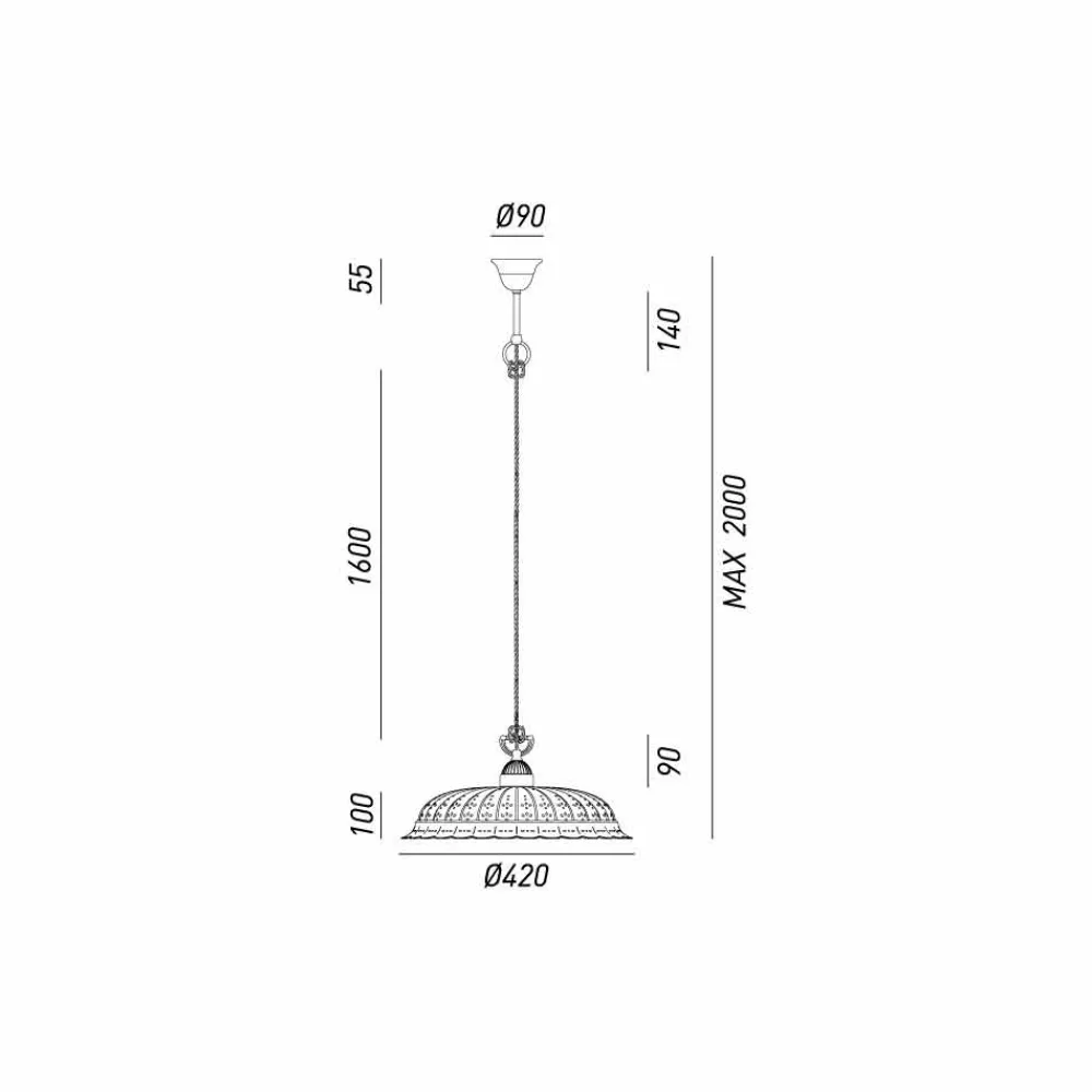 | Maße | Diffusor: Ø420 mm x H.100 mm; max. Aufhängehöhe 2000 mm; Rosette Ø90 mm |