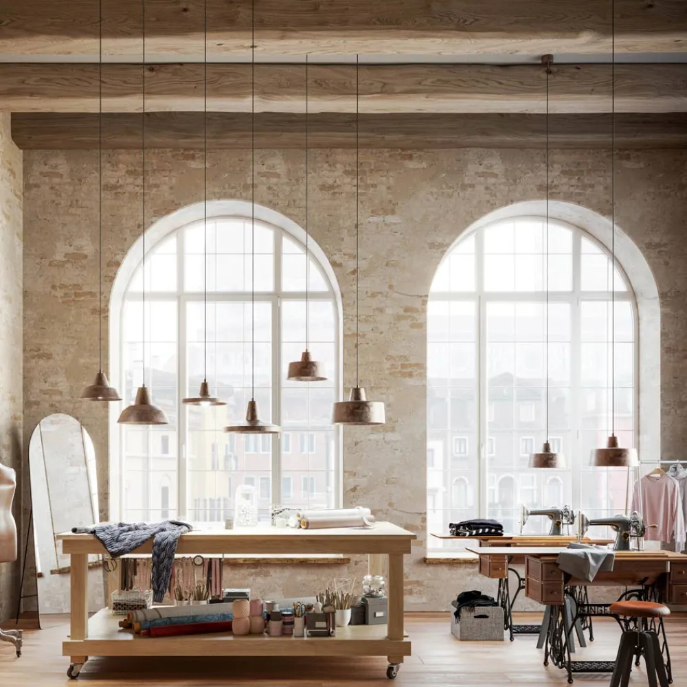 Monica ist eine wunderschön geformte Pendelleuchte in schmaler Glockenform und besticht durch sein ausgezeichneten industriellen Retro Stil. Monica verleiht einen rauen und vollkommenen naturbelassenen Anschein, der in jedem Winkel seine besonderen Eigenschaften perfekt in Szenierung bringt. Ihr minimlistischer Stil schafft verspielte Lichteffekte und lässt den Raum in seiner Wesentlichheit erstrahlen. Bei einer bestimmten Behandlungsmethode wird das Ausgangsmaterial mit Wasserstoffperoxid eingesprüht und bringt damit die Alterung in Schwung (Näheres siehe unten).