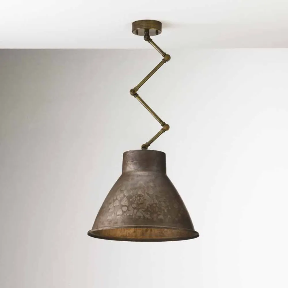 Pendelleuchte aus patinierten Eisen im Industrie Style. Die Hängelampe zeichnet sich vor allem durch Ihr robustes Auftreten und Ihre ästhetischen Eigenschaften aus. Der Industrie Chic Style überzeugt mit seinen Mix aus kaltem patinierten Eisen und die außergewöhnliche Handwerkskunst. Der optsiche Mix aus kalten Eisen und warmen Lichtstrahlen verleihen der Atmosphäre seinen außergewöhnlichen zeitlosen Touch. Der Schwenkarm besteht aus Messing und ist individuell in der Höhe oder der Richtung einstellbar.
