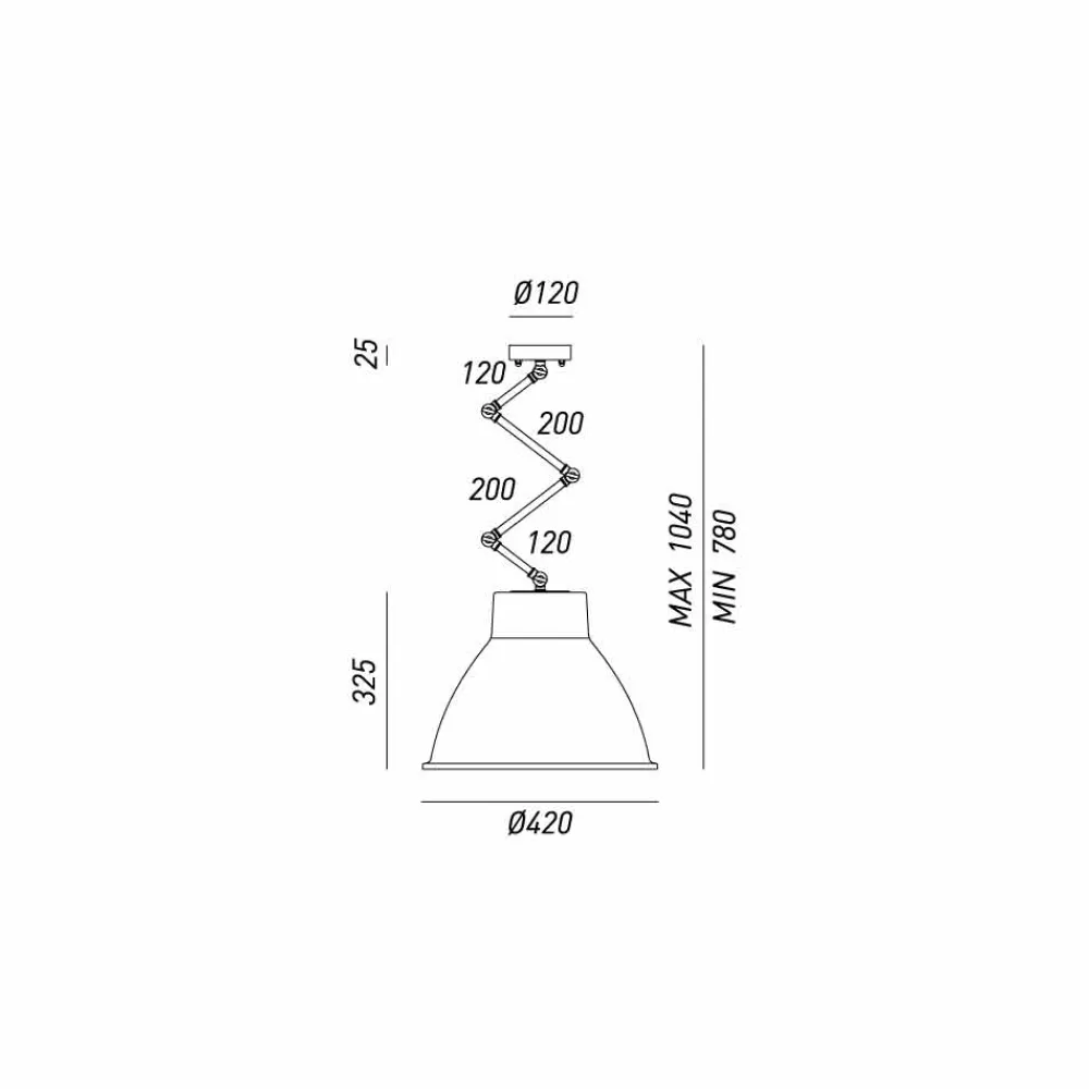 | Maße | Diffusor: Ø420 mm x H.325 mm; max. Aufhängungshöhe 1040 mm; Rosette Ø120 mm |