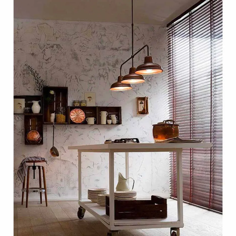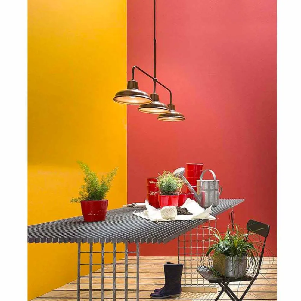 3-flammiger Kronleuchter im Vintage-Stil aus Kupfer und Messing, hergestellt in Italien.