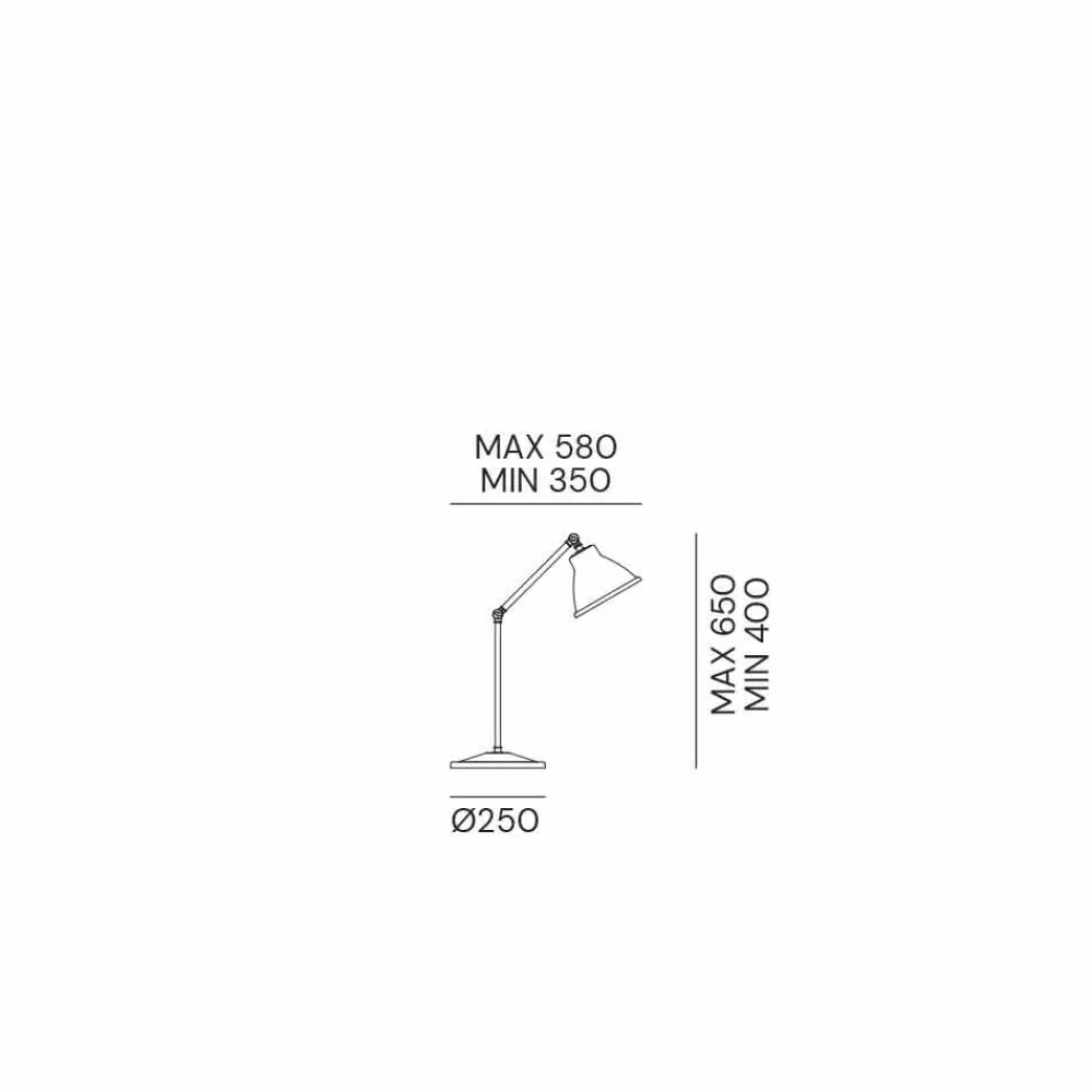 Diese Tischlampe für den Innenbereich wird vollständig in Italien und aus Eisen und Messing hergestellt . Das klare Design zeichnet sich durch eine starke Materialität und raffinierte ästhetische Elemente aus.